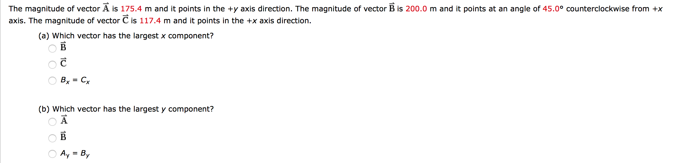 The magnitude of vector A is 175.4 m and it points in the +y axis d...