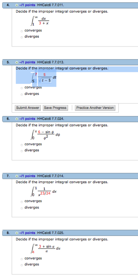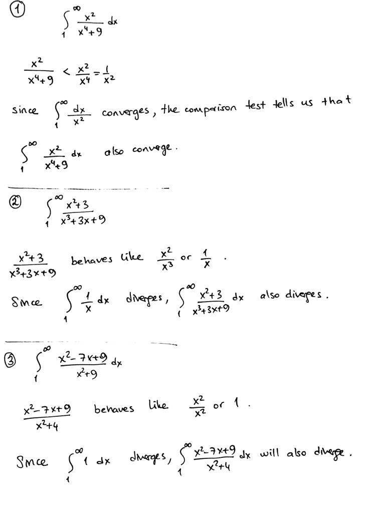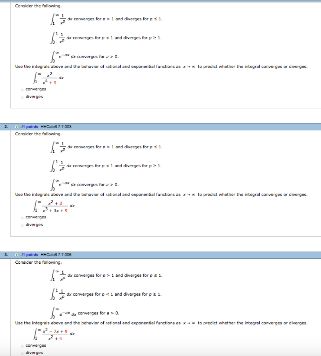 Consider the following. 1.1/1 converges p > diverges ps1. dx f...