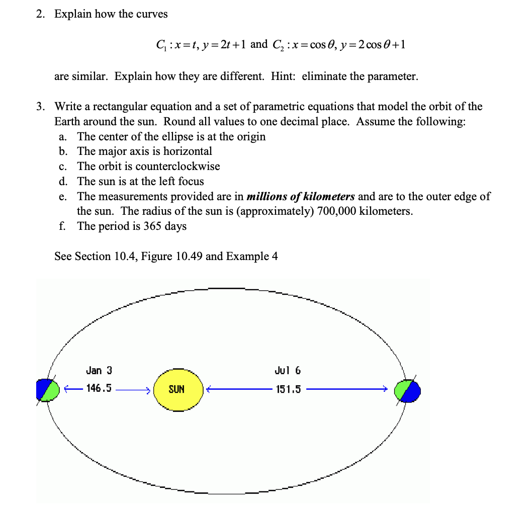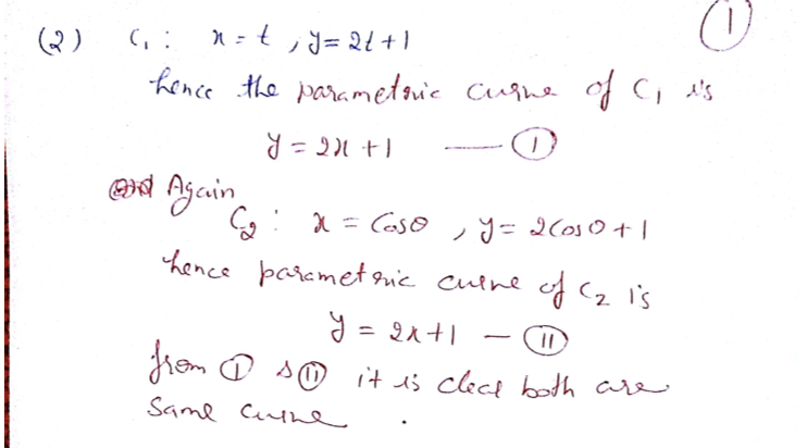 2. Explain how the curves C : x = t,y=2t+1 and C2:x=cos0,y=2cos0+1...
