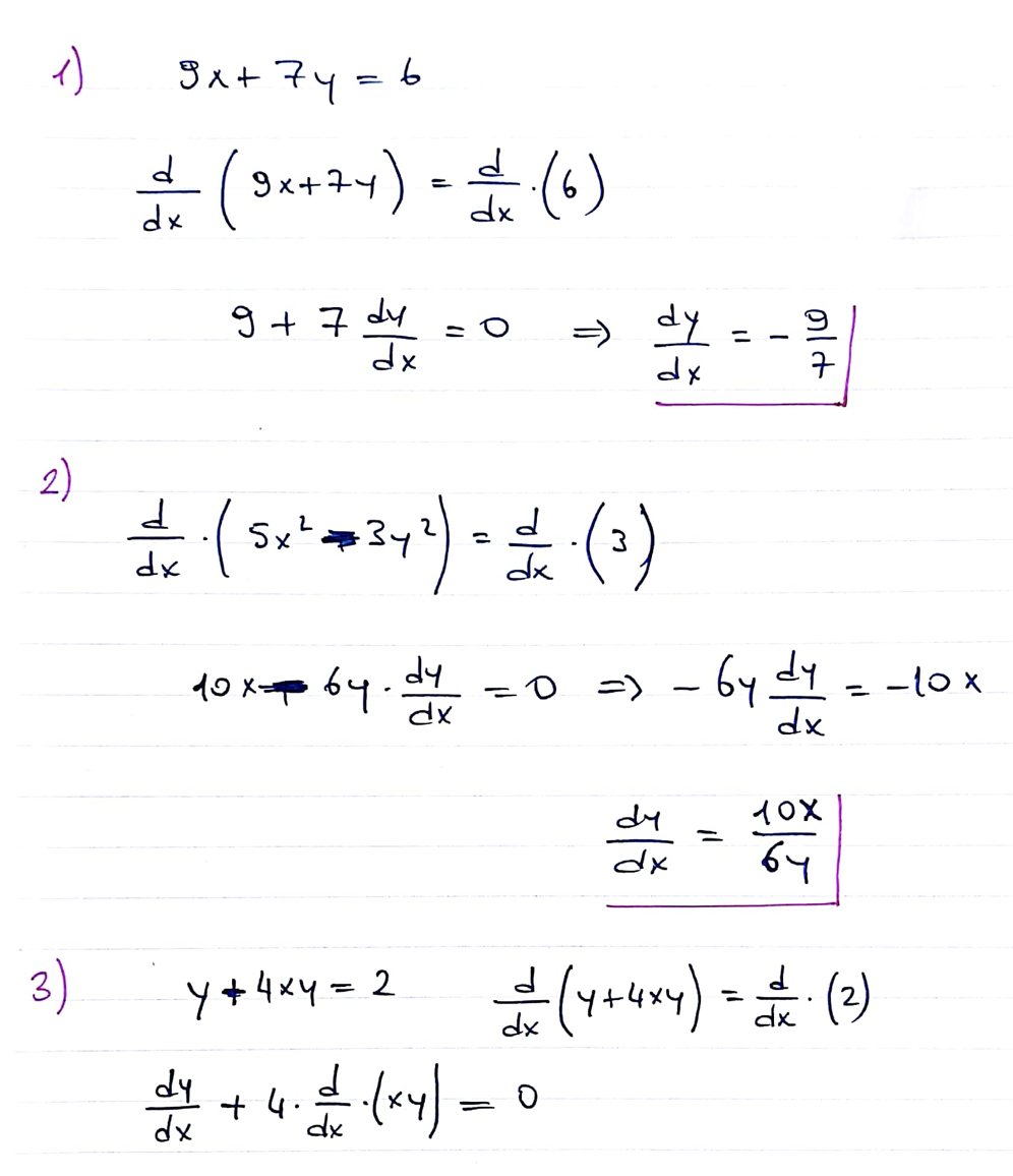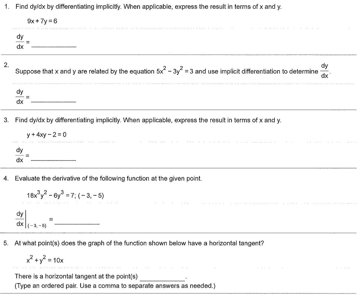 1. Find dy/dx by differentiating implicitly. When applicable, expre...