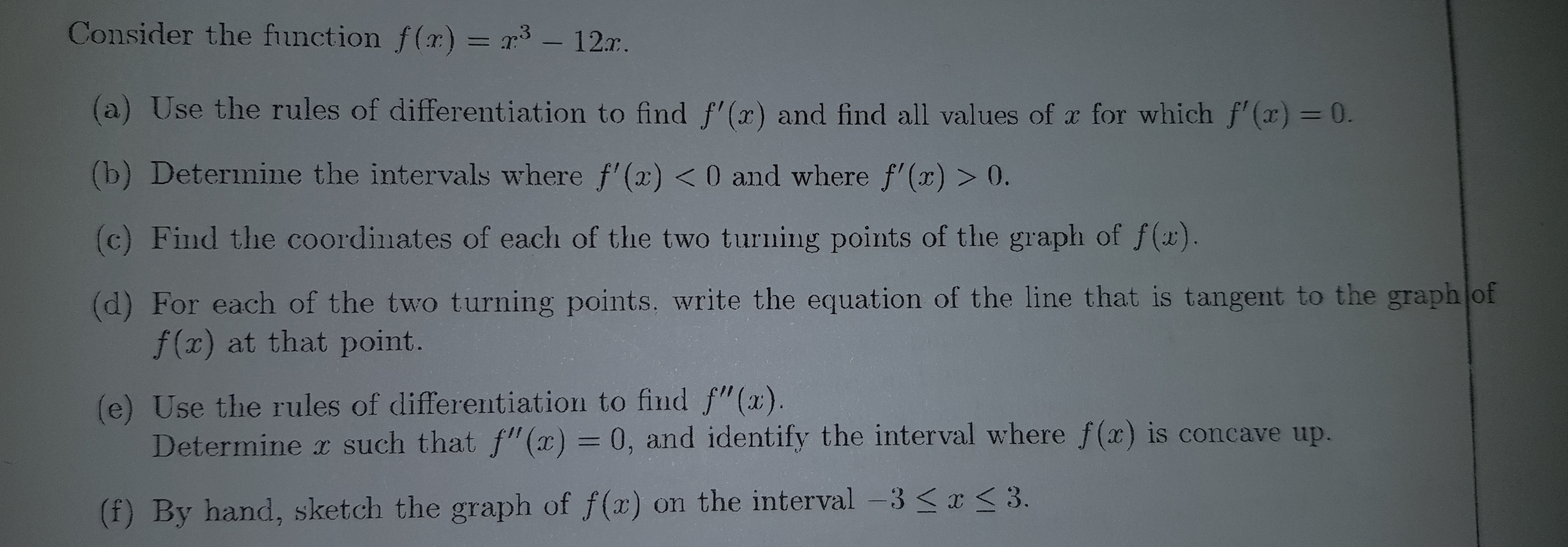 Consider the function f(x) = r3 12.r. (a) Use the rules of differe...