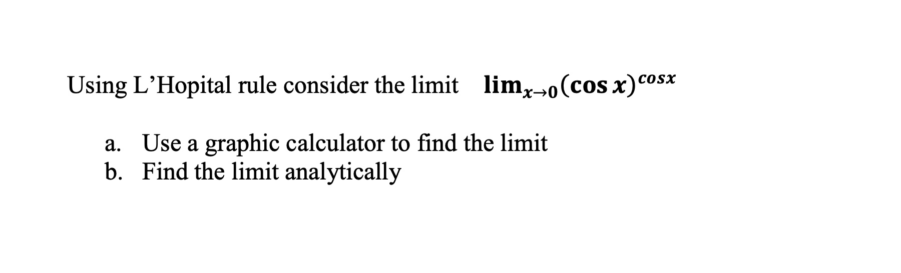 Using L’Hopital rule consider the limit ( ) a. Use a graphic cal...