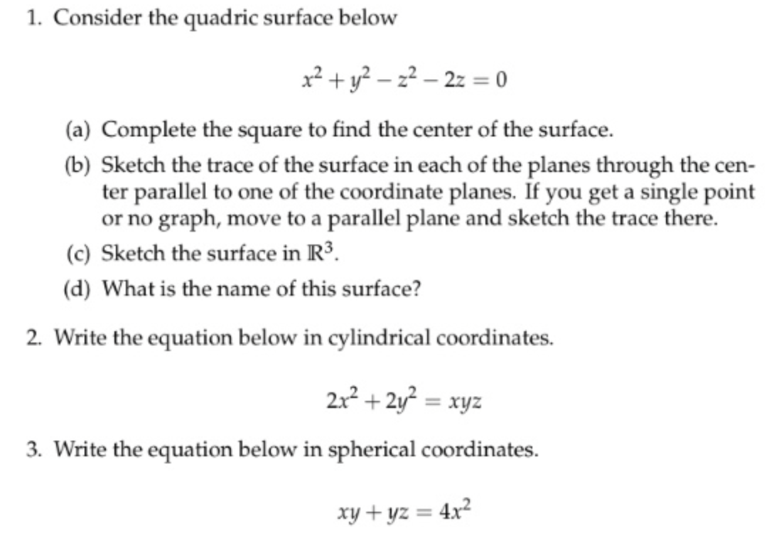 1. Consider the quadric surface below = (a) Complete the square t...