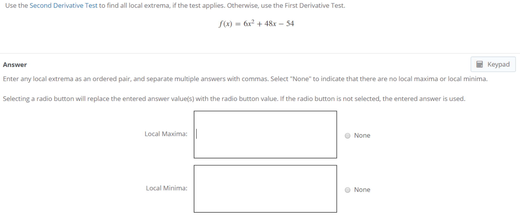 Use the Second Derivative Test to find all local extrema, if the te...
