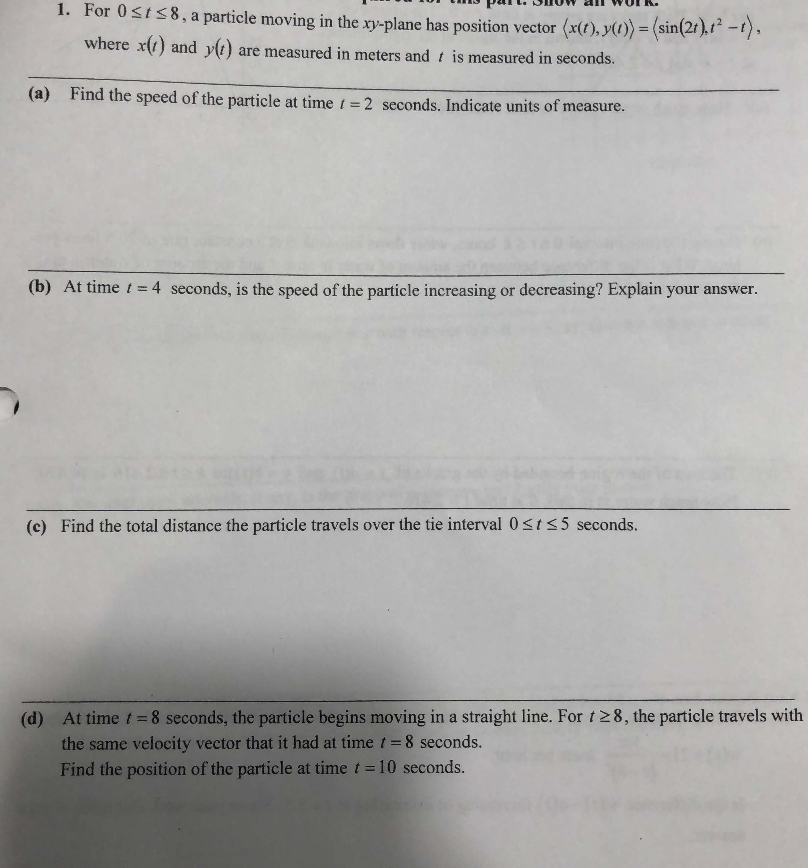 1. For OSI<8, a particle moving in the xy-plane has positio...