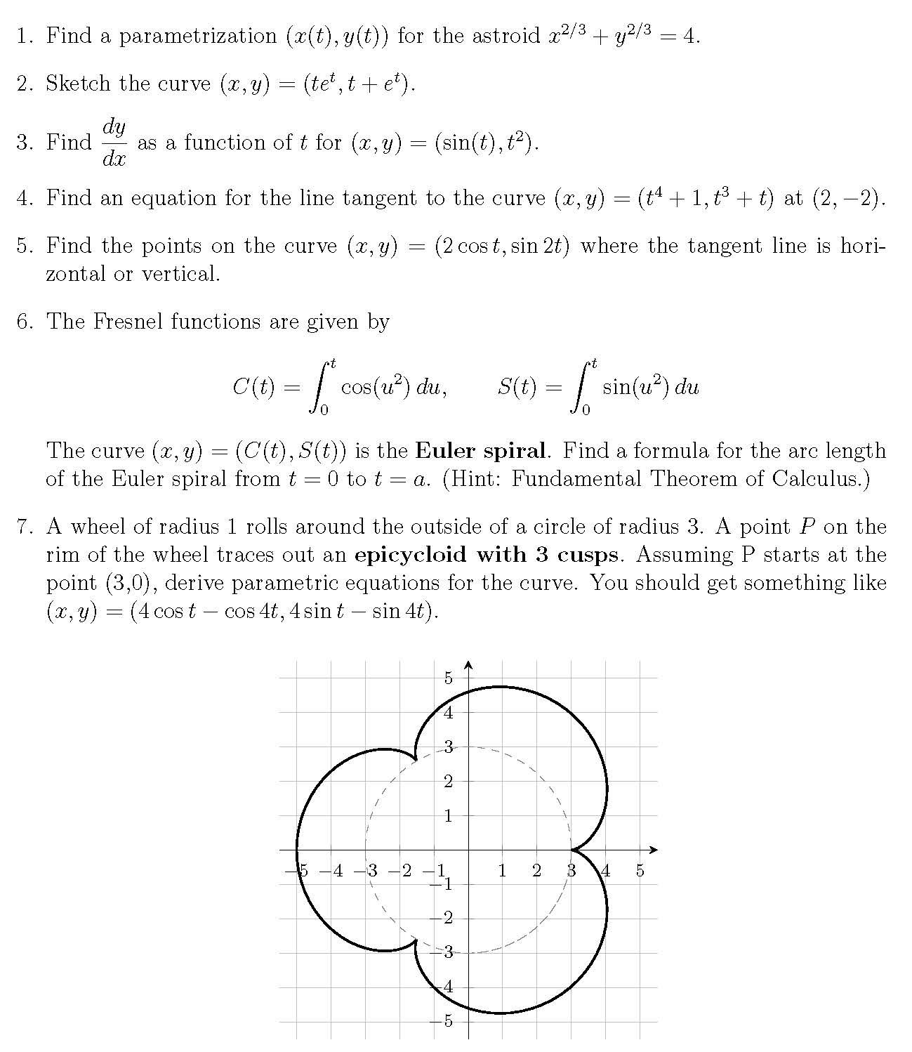1. Find a parametrization (x(t),y(t)) for the astroid 2. Sketch th...