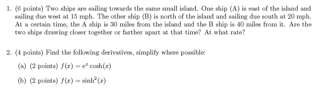 1. (6 points) Two ships are sailing towards the same small island. ...