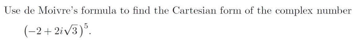 Use de Moivre's formula to find the Cartesian form of the complex n...