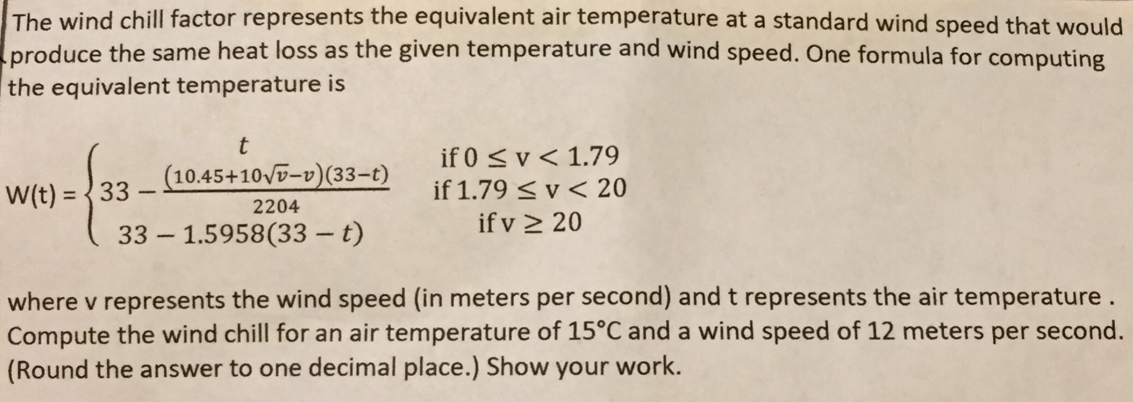 The wind chill factor represents the equivalent air temperature at ...