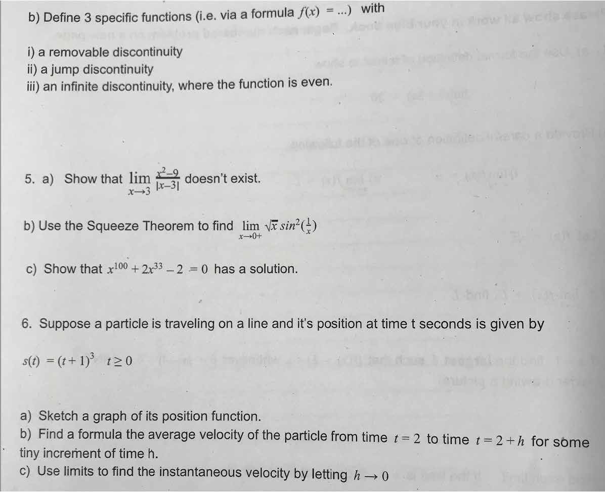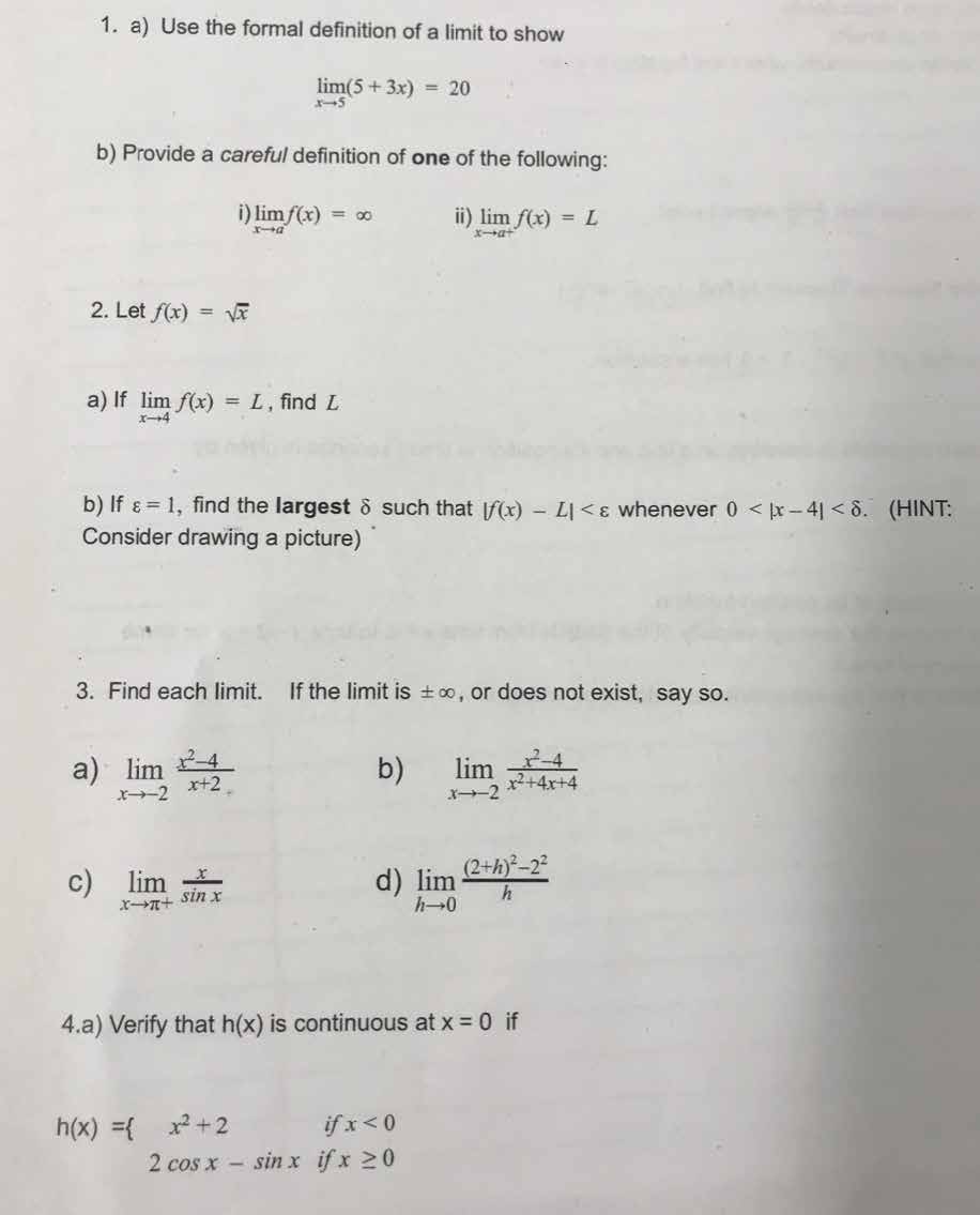 1. a) Use the formal definition of a limit to show lim(5 + 3x) = 2...