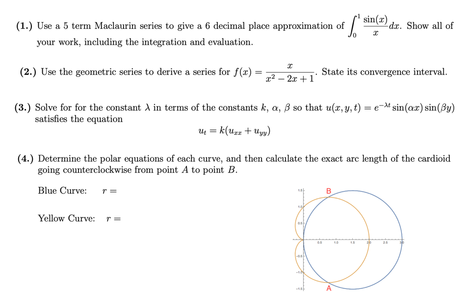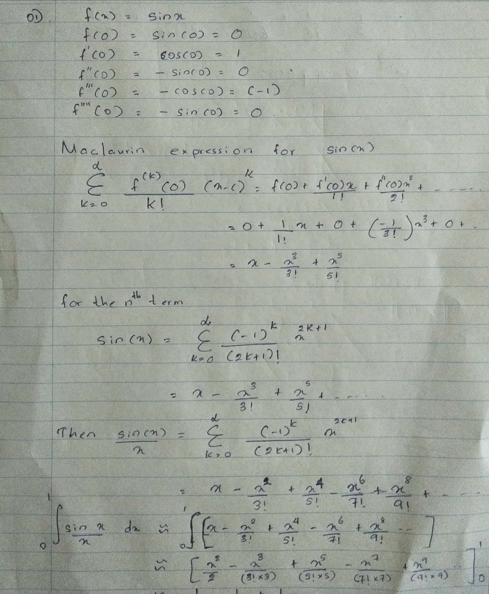 (1.) Use a 5 term Maclaurin series to give a 6 decimal place approx...