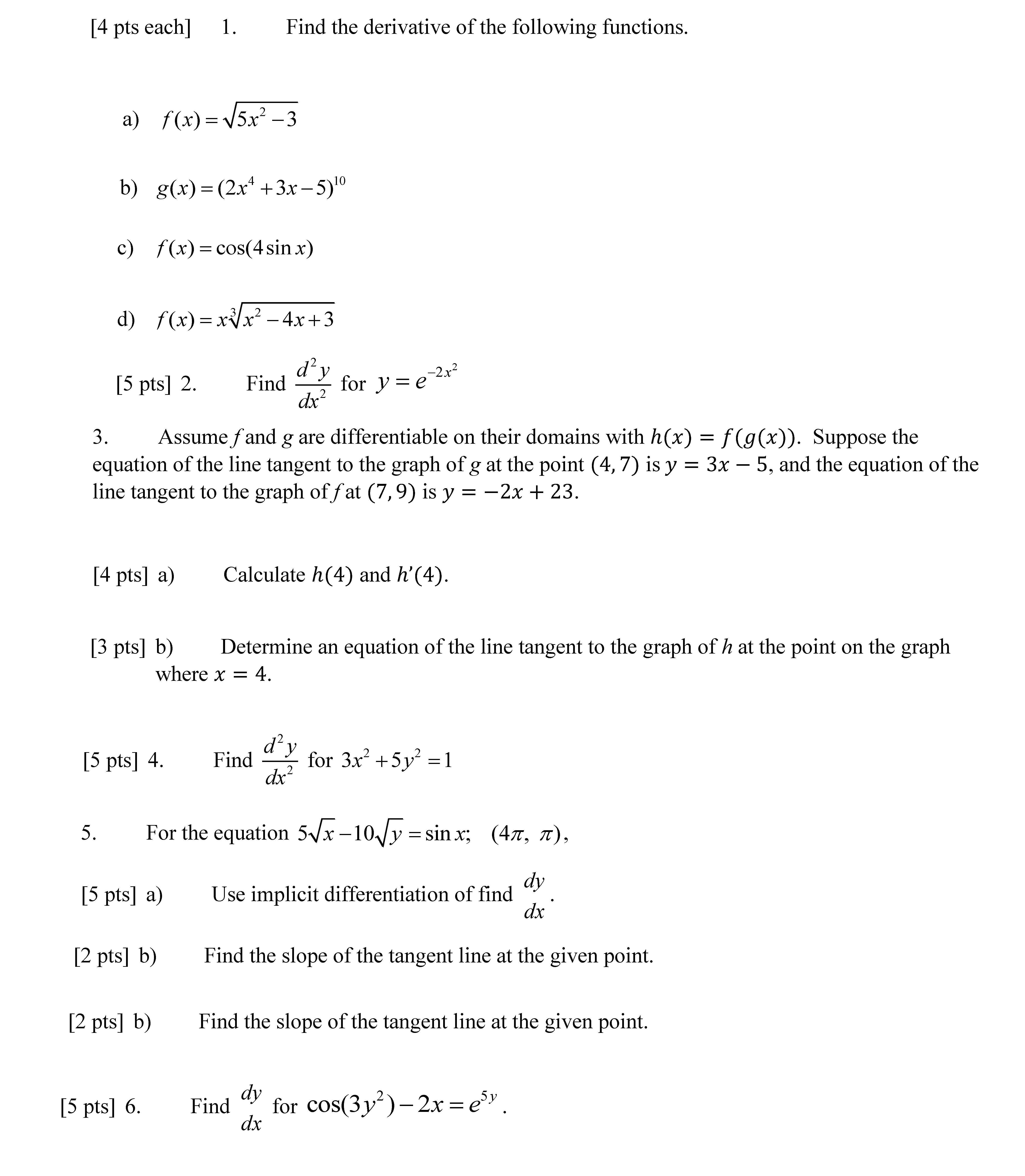 Find the derivative of the following functions a) f(x)- b) 8(x)-(...