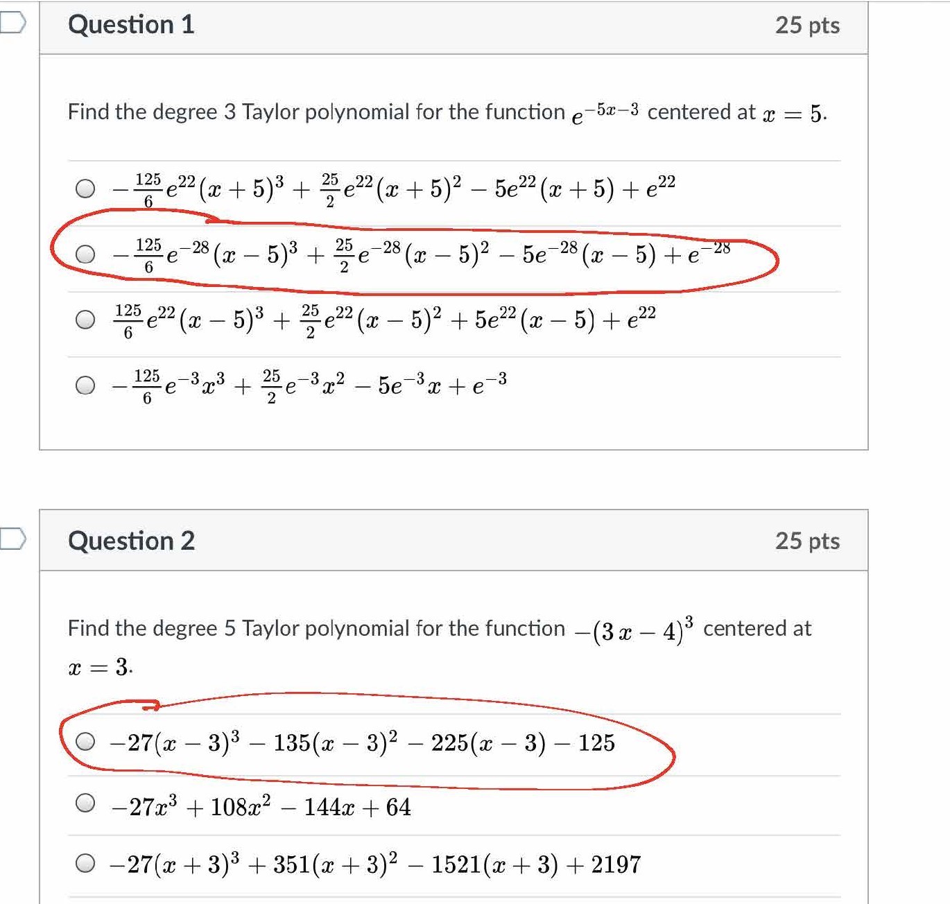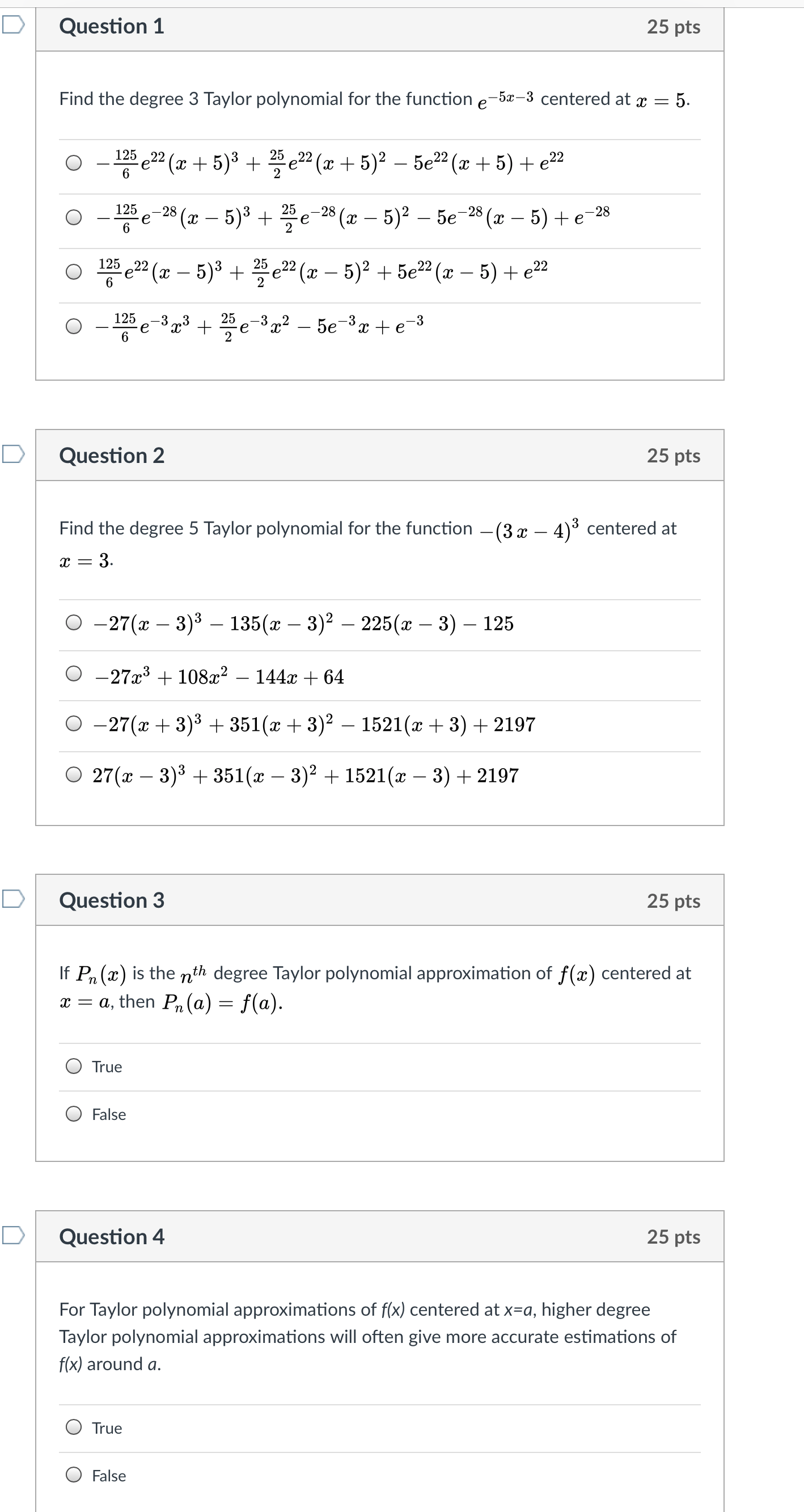 Question 1 25 pts Find the degree 3 Taylor polynomial for the fun...