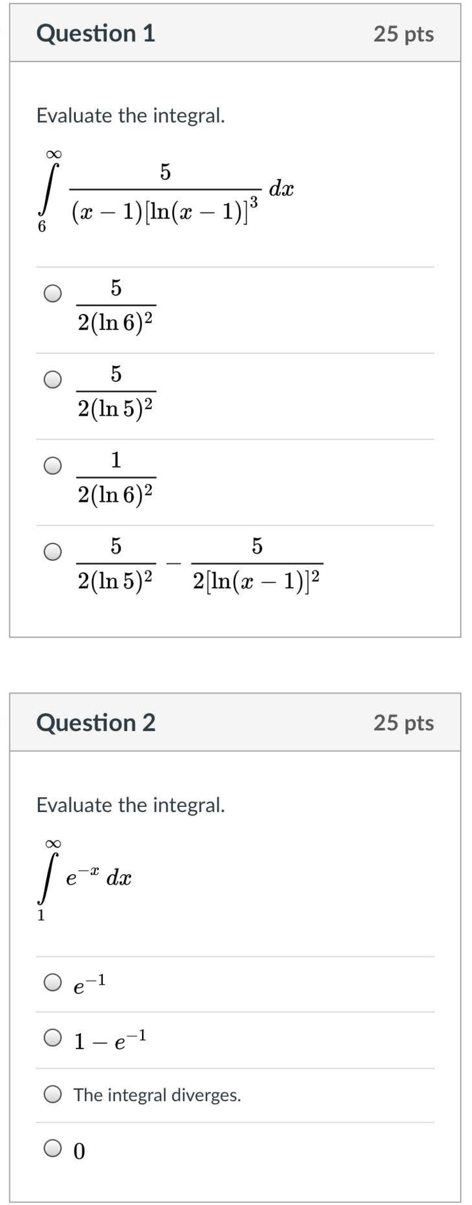 Question 1 25 pts Evaluate the integral. 80 5 da (x - 1) [In(...