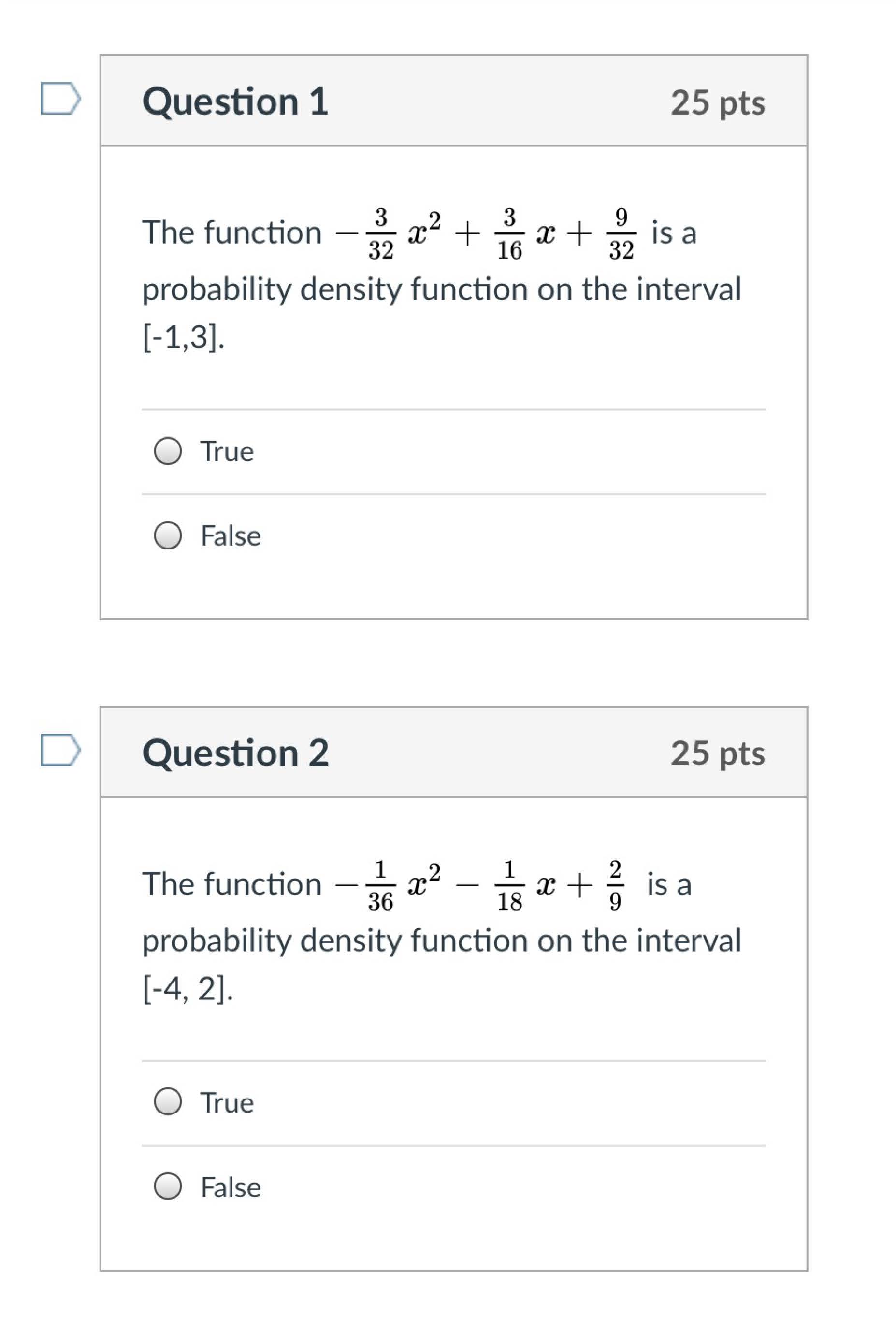Question 1 25 pts The function 32 3 2 16 3 x + 32 9 is a probabi...