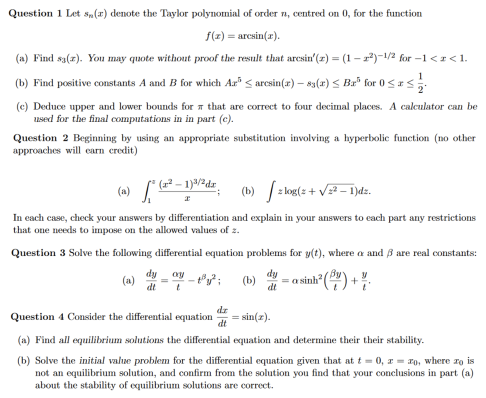 Question 1 Let Sn(x) denote the Taylor polynomial of order n, centr...
