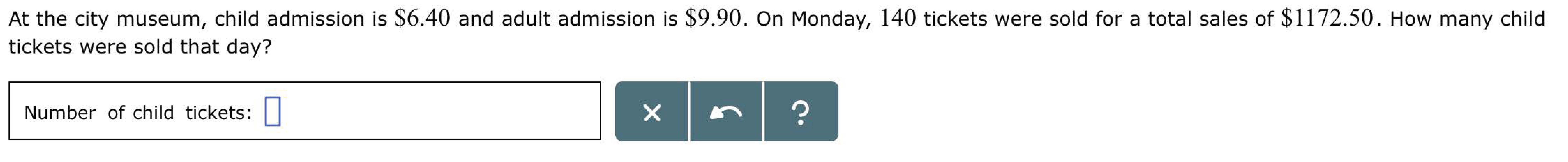 At the city museum, child admission is $6.40 and adult admission is...