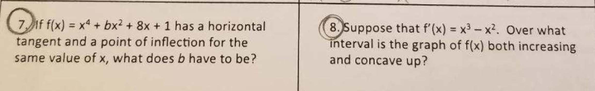 7. = x4 + bx² + 8x + 1 has a horizontal 8. Suppose that f' (x)...