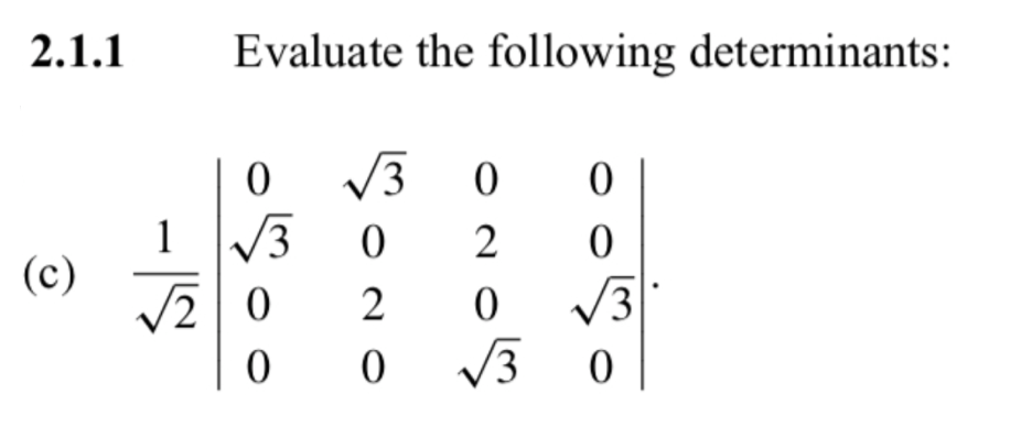 2.1.1 Evaluate the following determinants: 3 1 3 2 (c) 1/2...