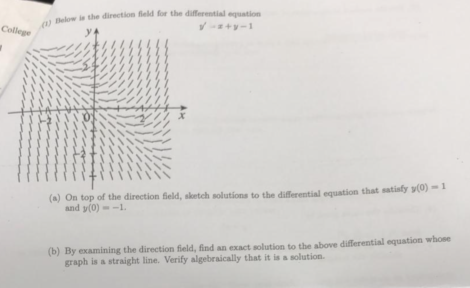 (1) Below is the direction field for the differential equation Col...