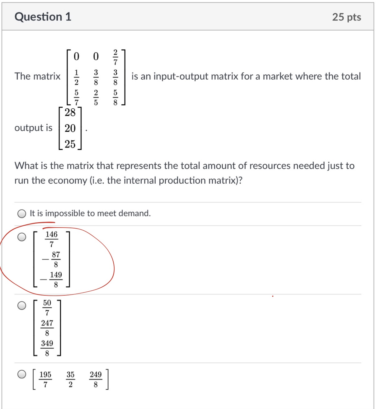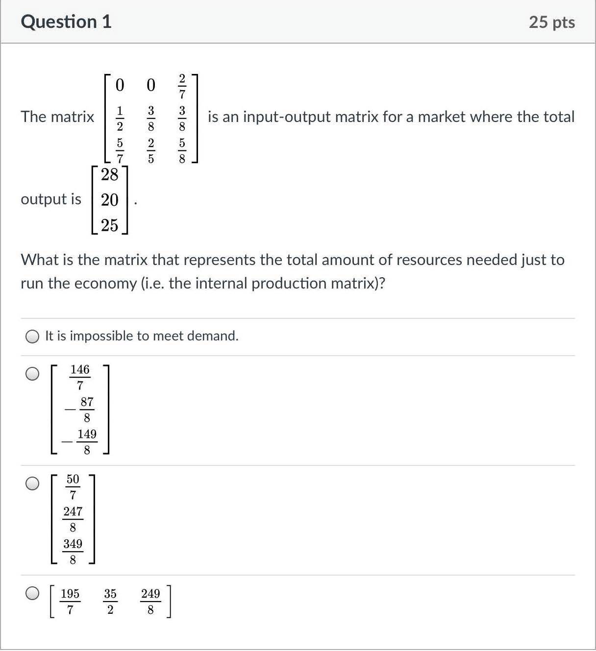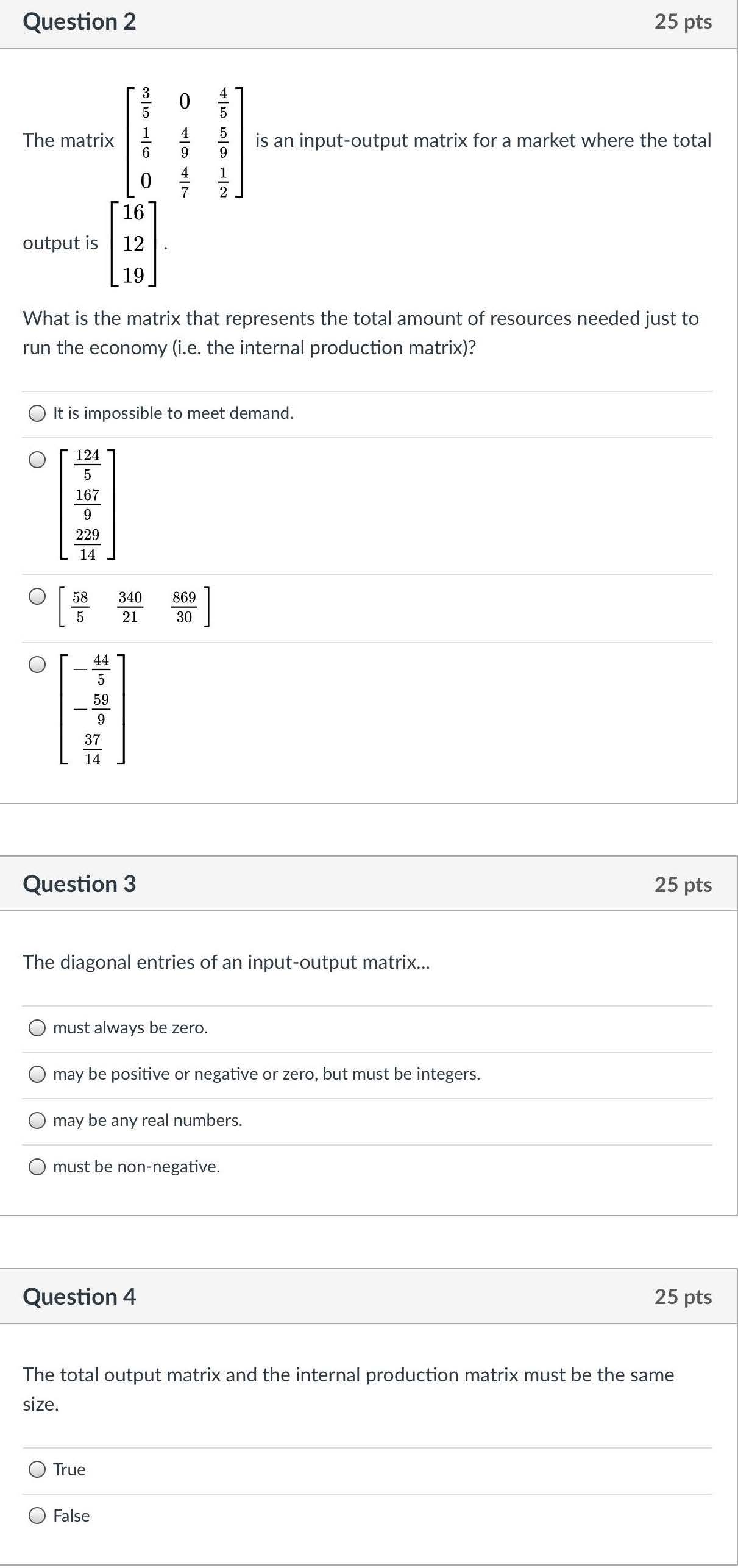 Question 1 25 pts 2 7 The matrix 1 3 3 is an input-output m...