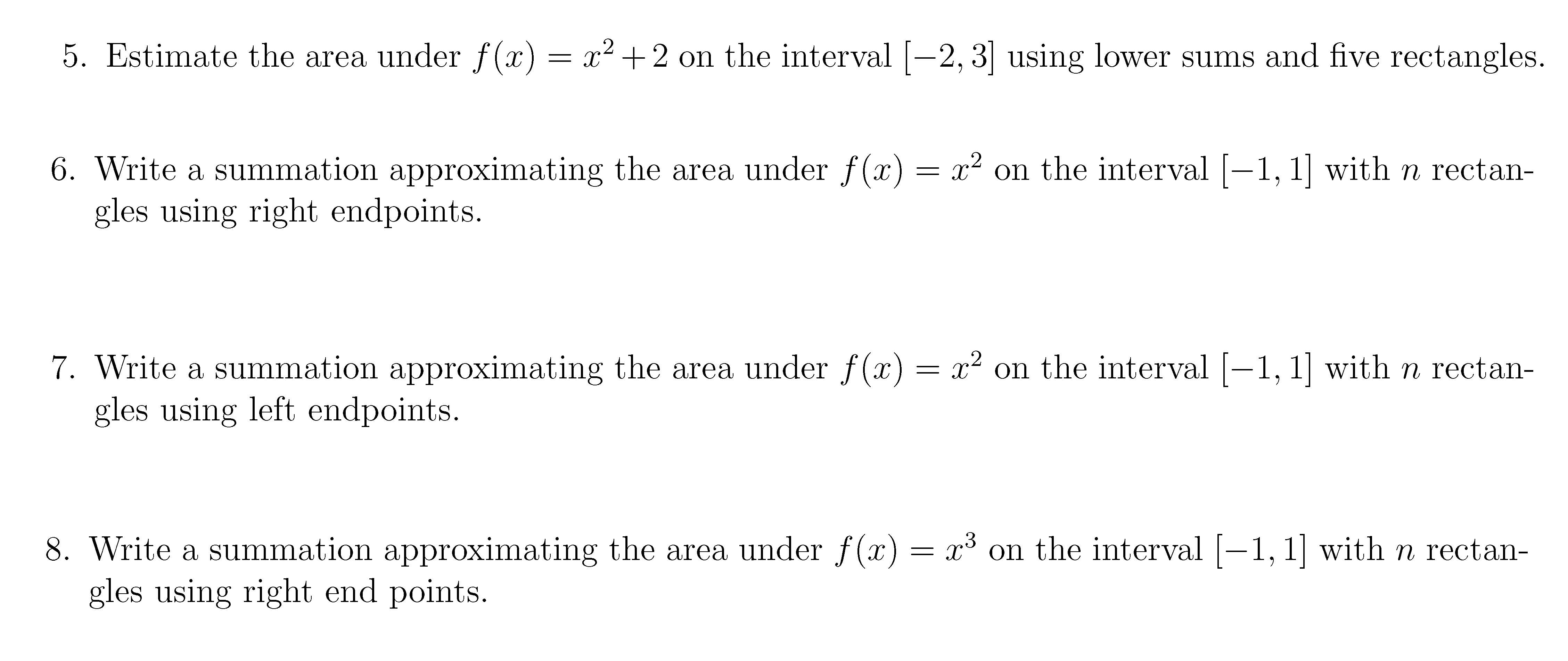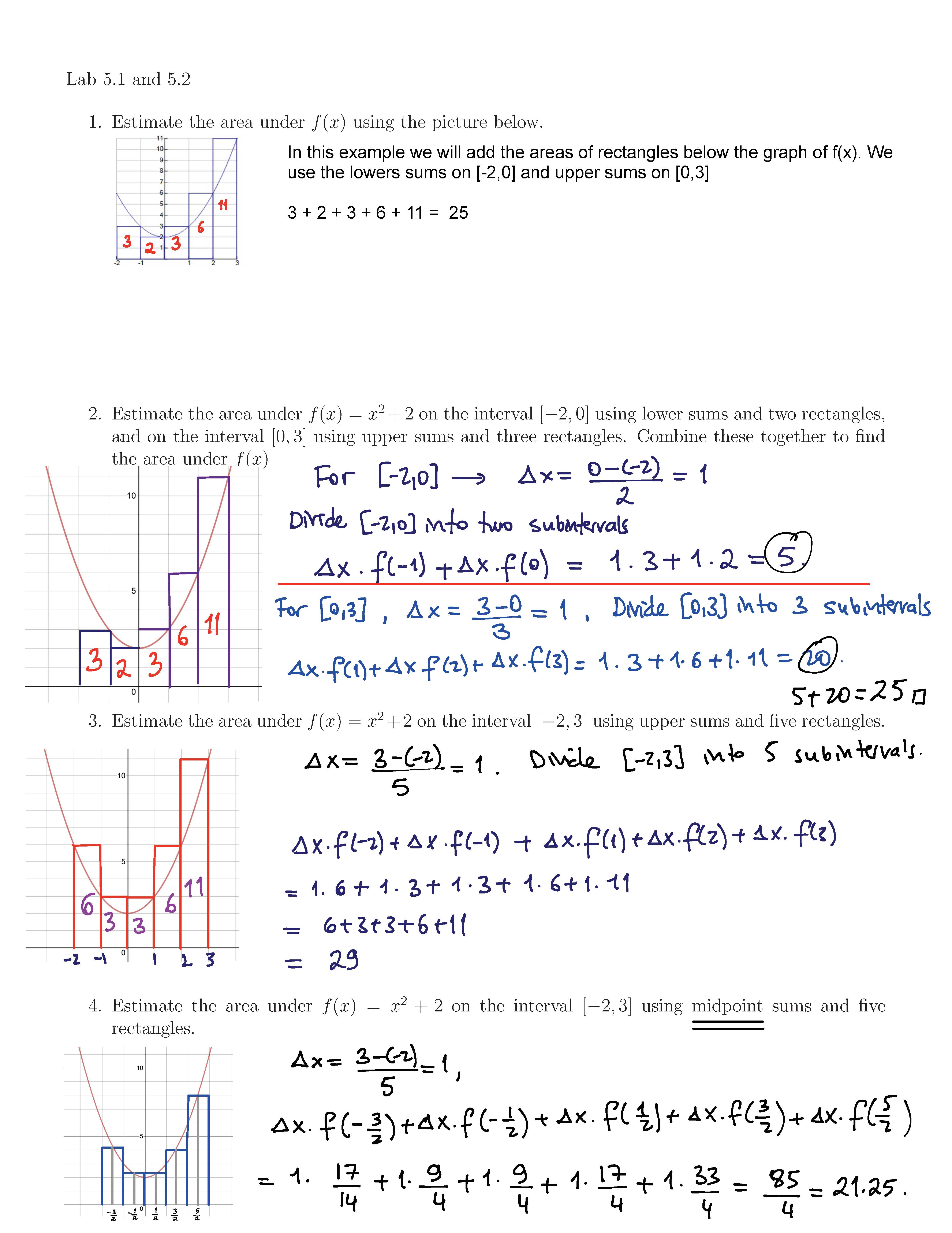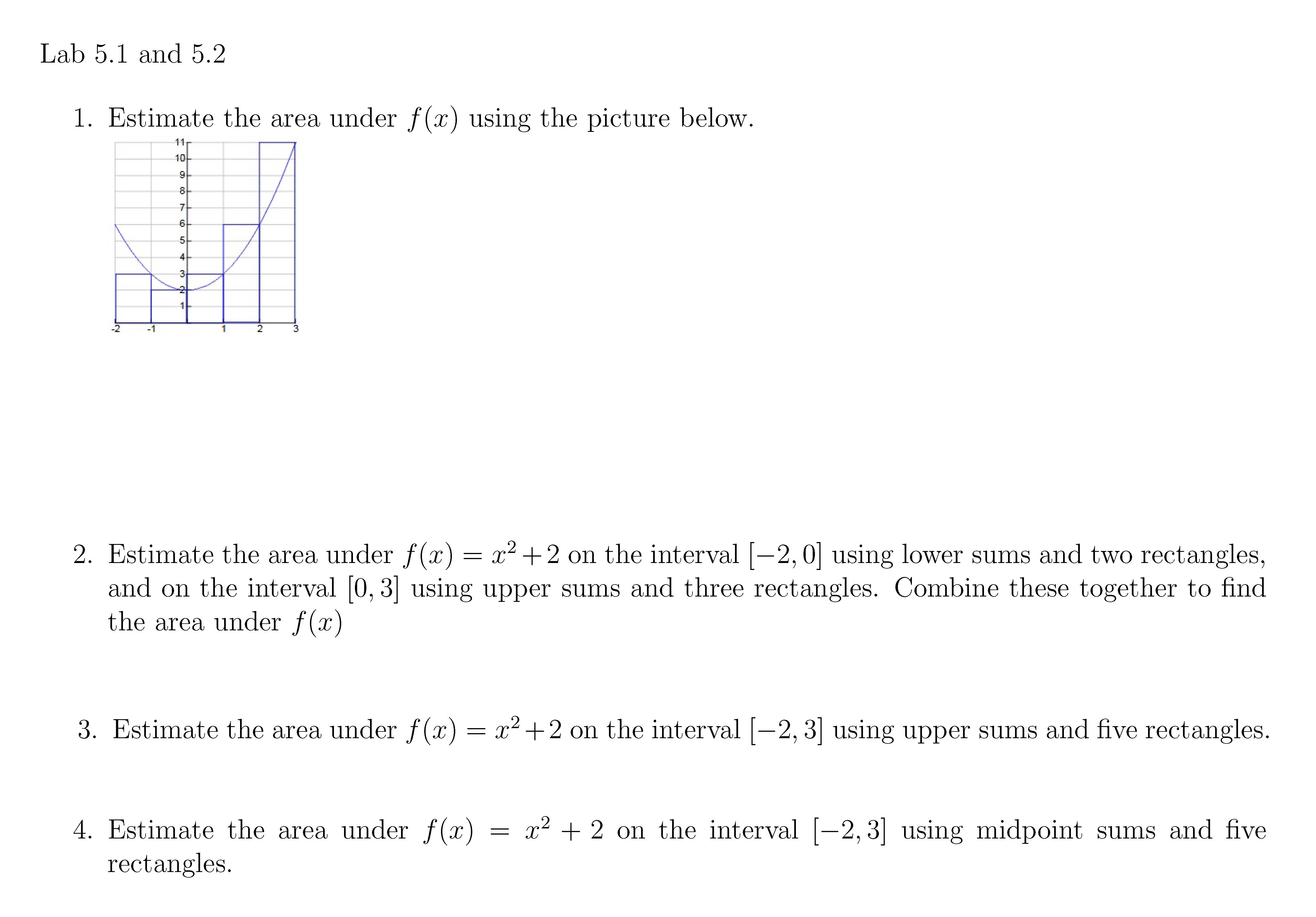 Lab 5.1 and 5.2 1. Estimate the area under f(x) using the picture ...