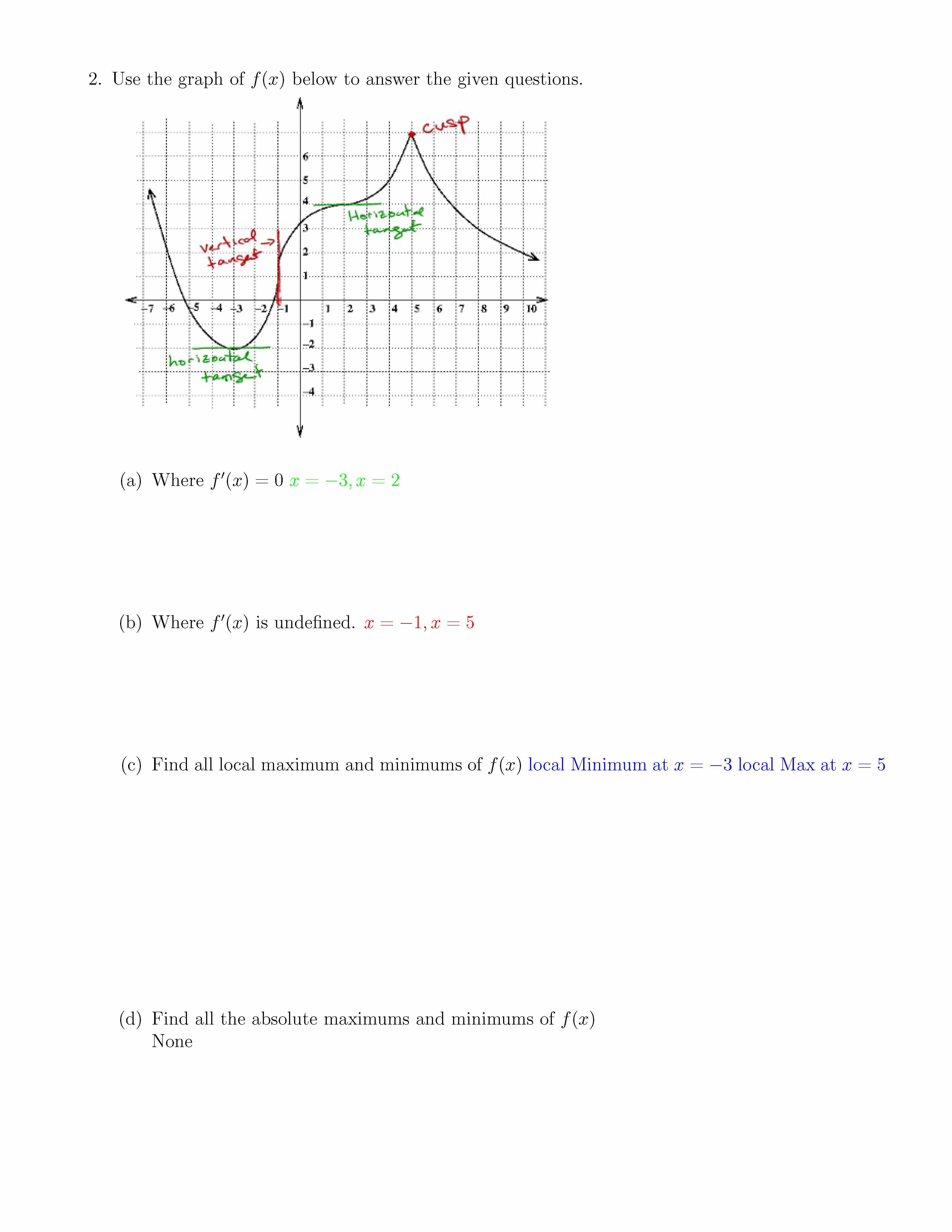 2. Use the graph of f(x) below to answer the given questions. (a) ...