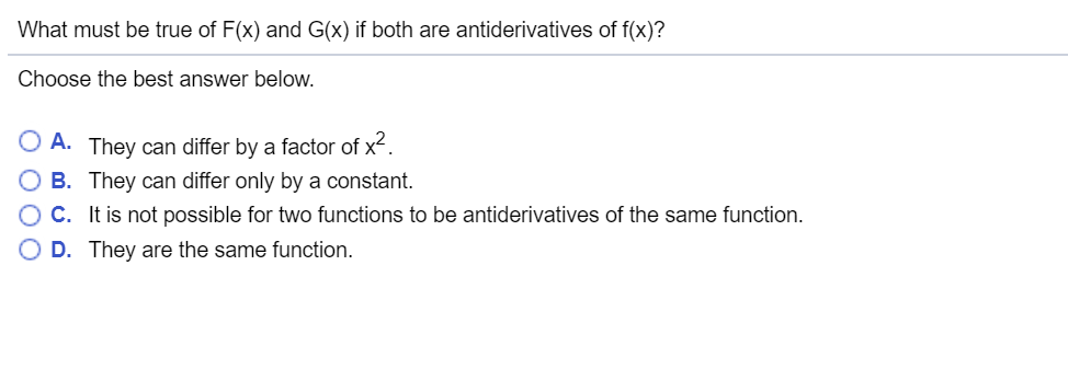 What must be true of F(x) and G(x) if both are antiderivatives of f...