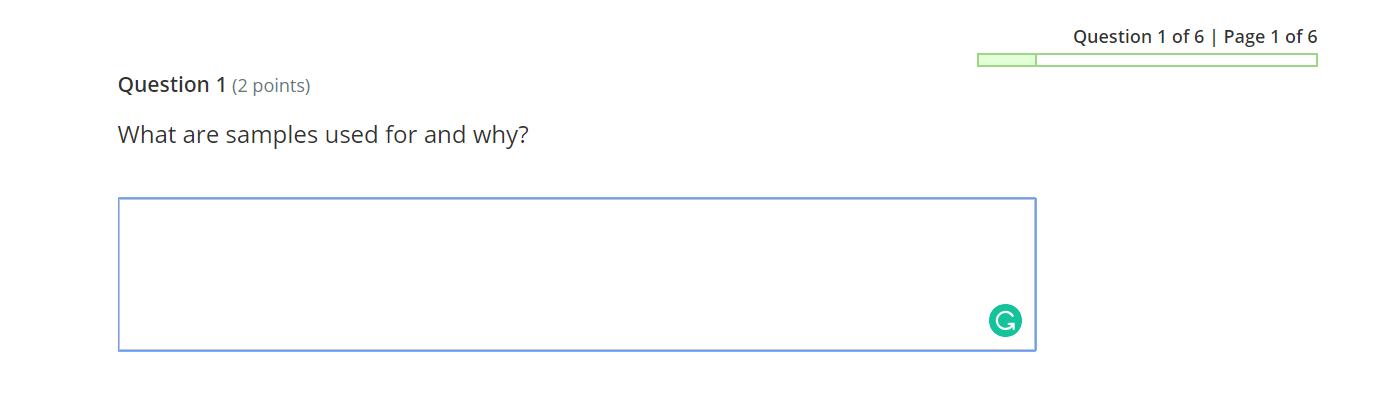 Question 1 of 6 I Page 1 of 6 Question 1 (2 points) What are samp...