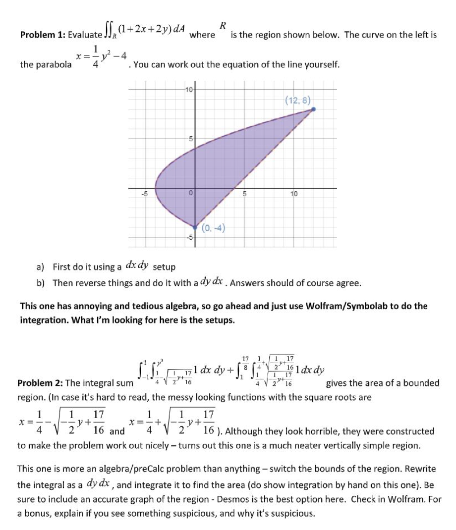 Problem 1: Evaluate dA where R is the region shown below. The cur...