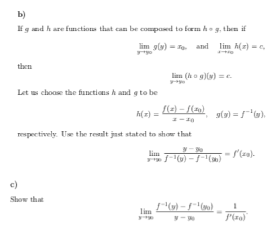 b) If g and h are functions that can be composed to form hog. then...
