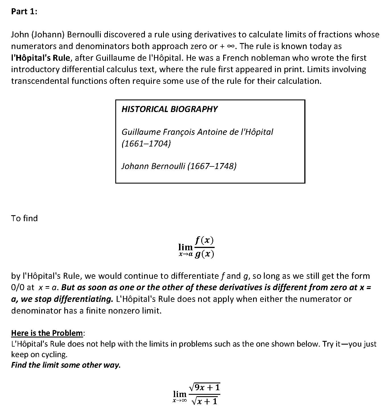 Part 1: John (Johann) Bernoulli discovered a rule using derivative...