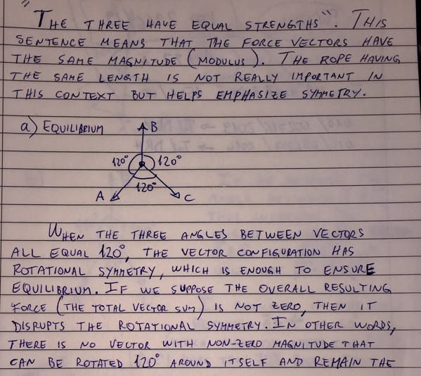 In a three way tug of war,three students of equal strength pull on ...