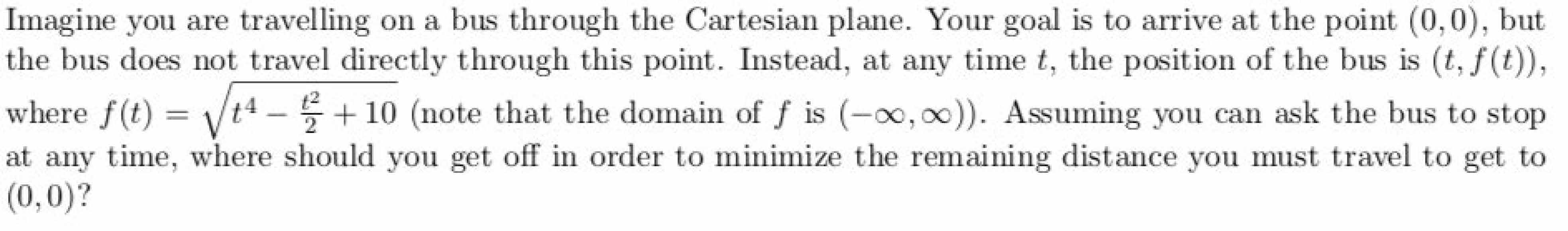 Imagine you are travelling on a bus through the Cartesian plane. Yo...