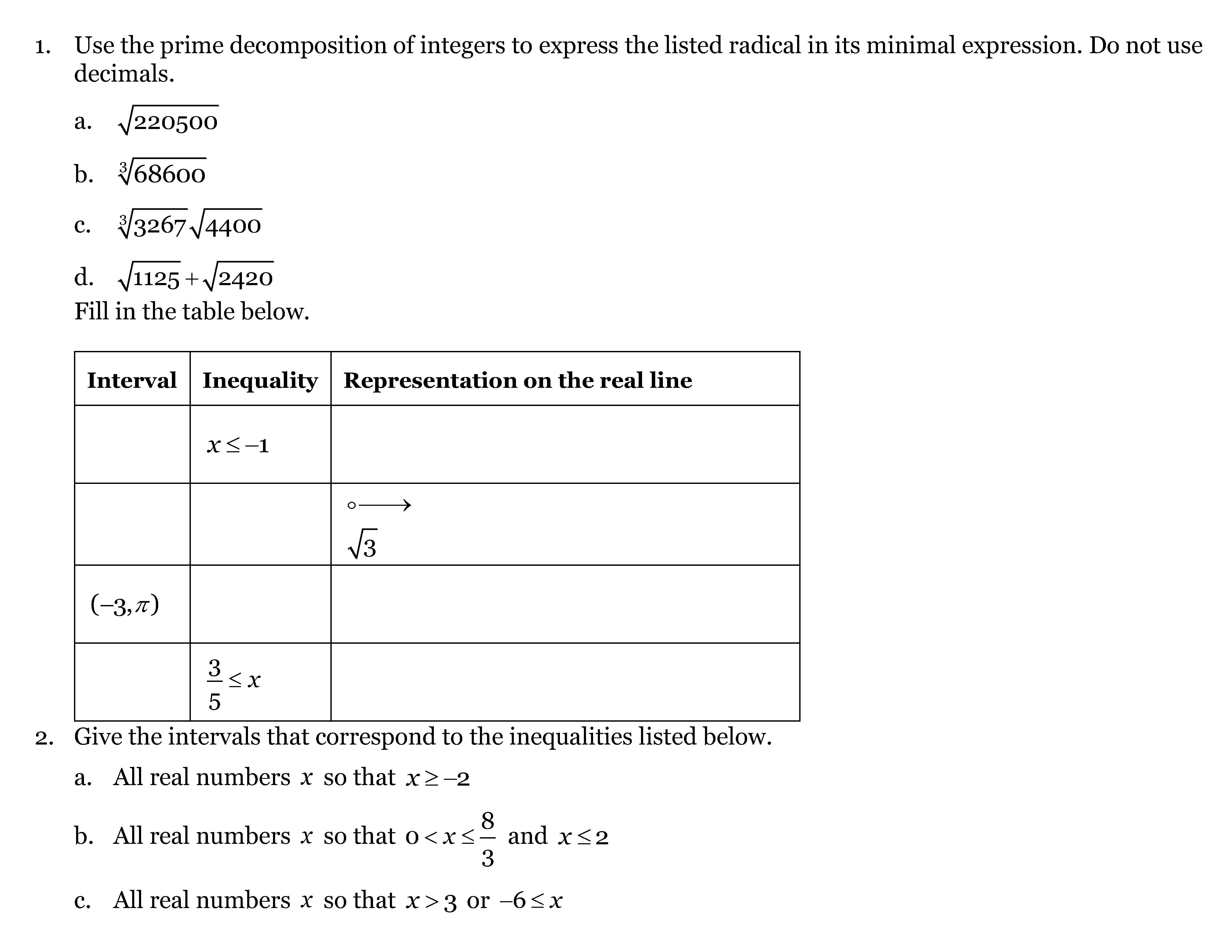 1. Use the prime decomposition of integers to express the listed ra...