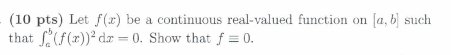 (10 pts) Let f(x) be a continuous real-valued function on [a, b] su...