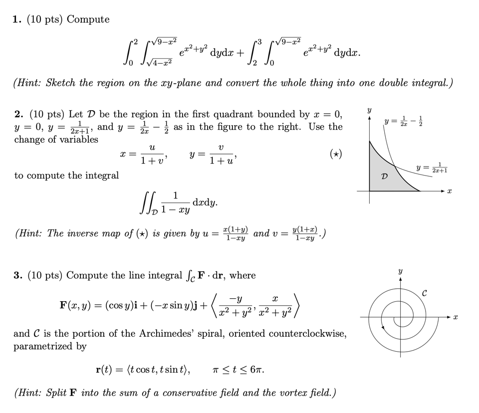 1. (10 pts) Compute (Hint: Sketch the region on the xy-plane and c...