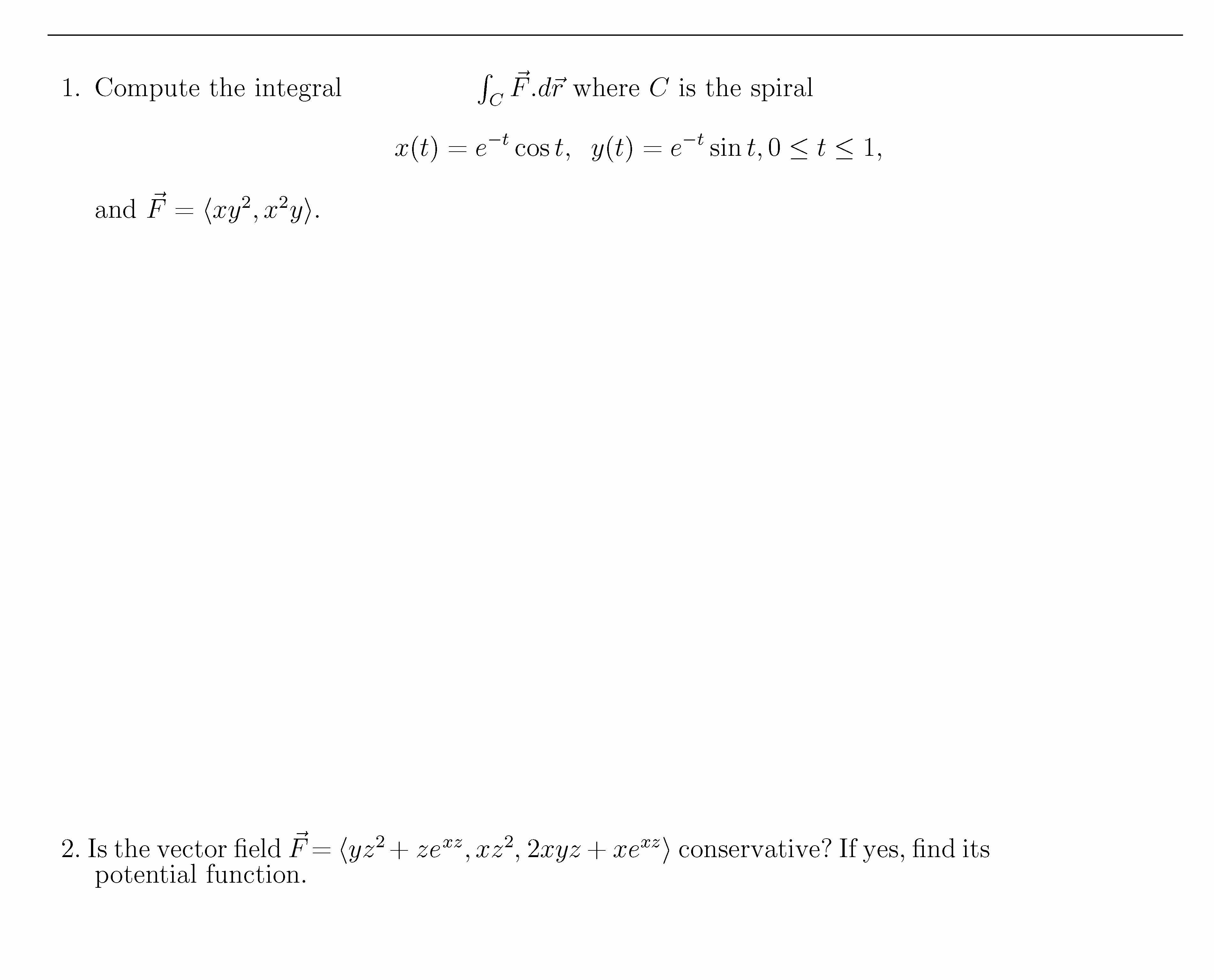 1. Compute the integral R C F .d ~ ~r where C is the spiral x(t)...