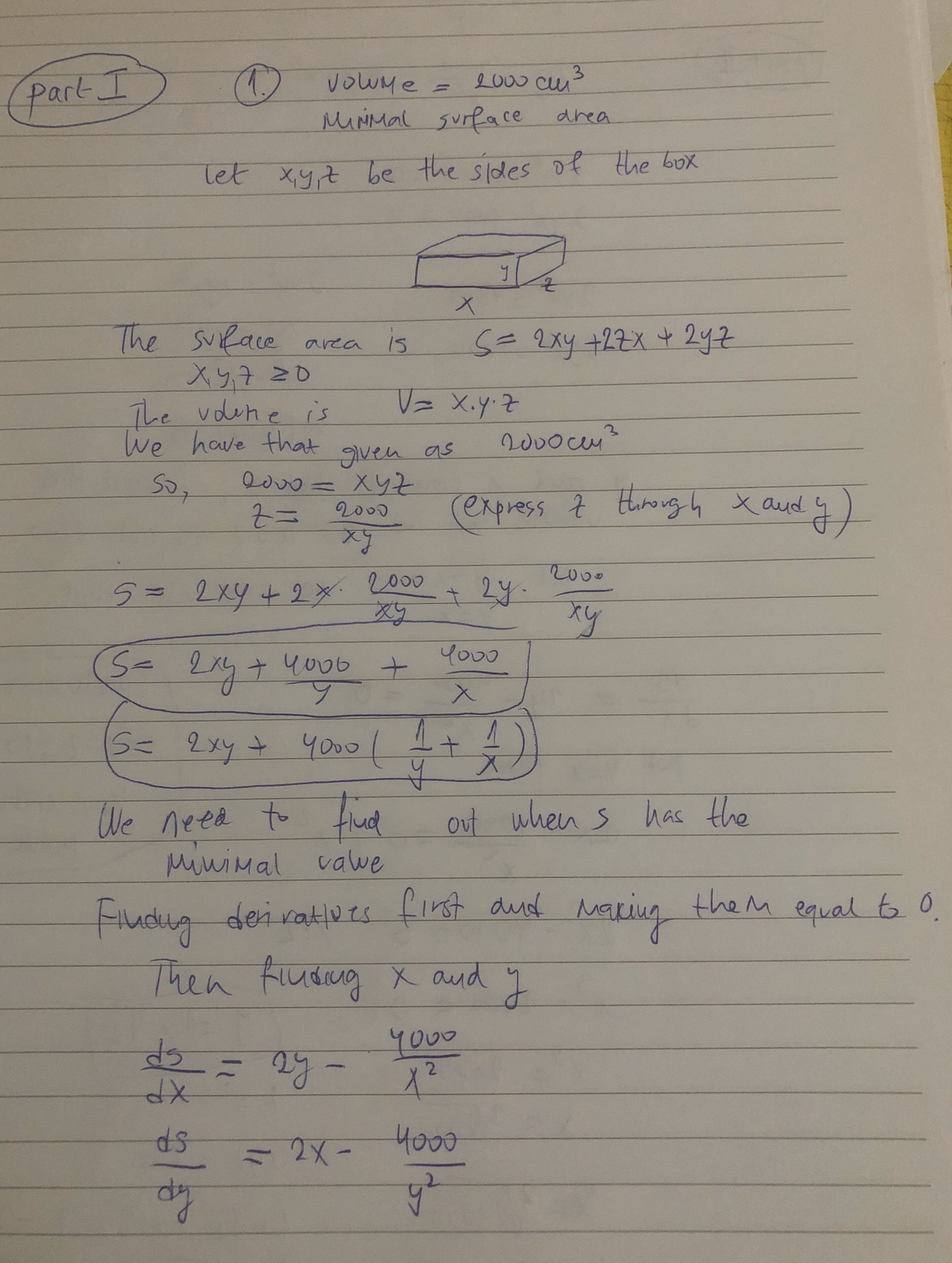 1. Find the dimensions of the box with volume 2000 ð‘ð‘š3 that h...