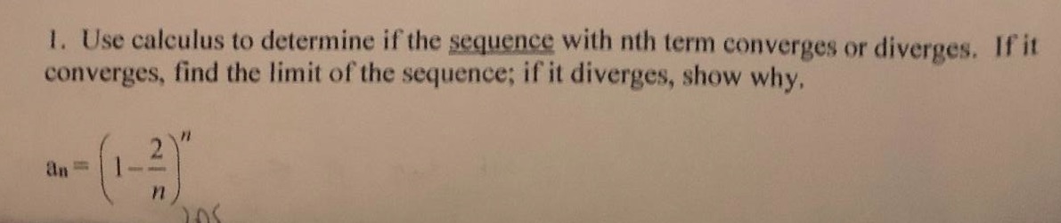 1. Use calculus to determine if the sequence with nth term converge...