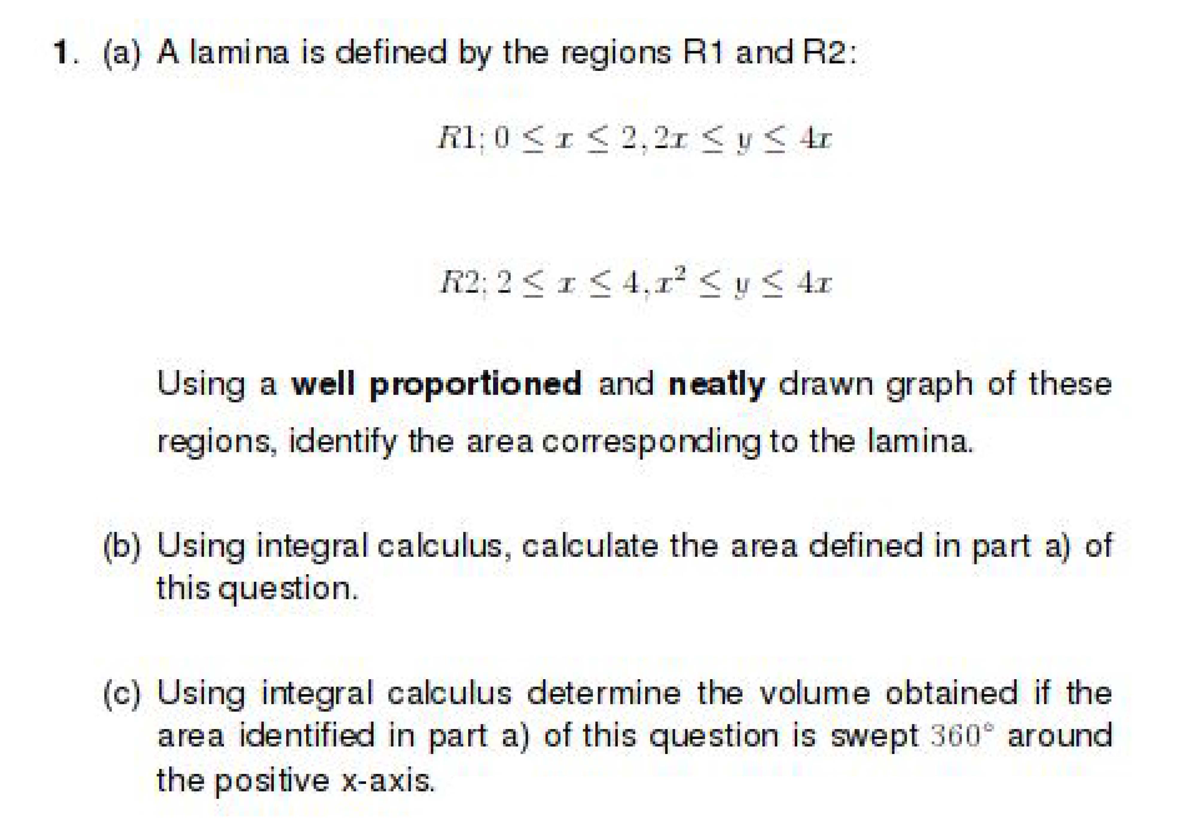 1. (a) A lamina is defined by the regions R1 and R2: Using a well...