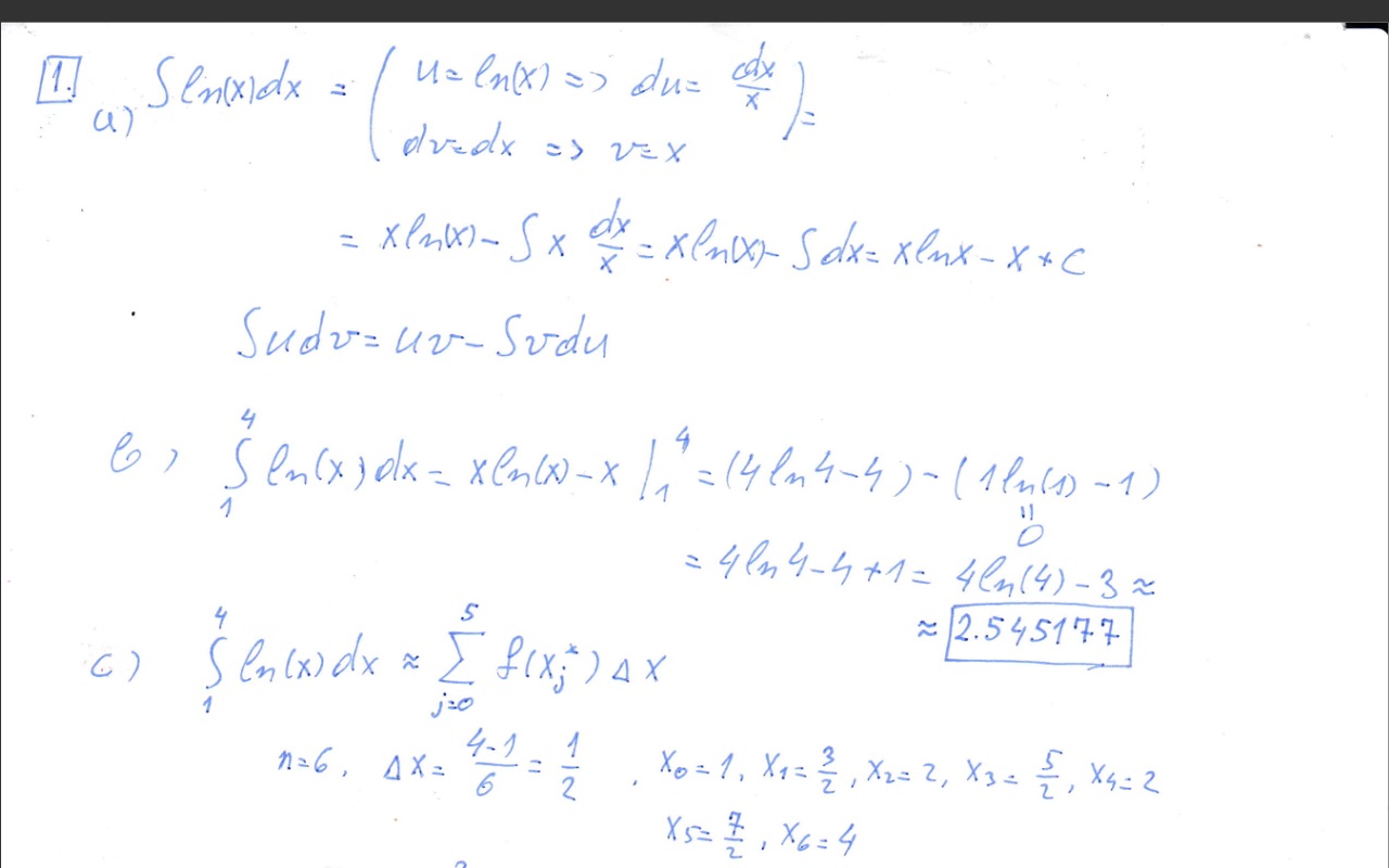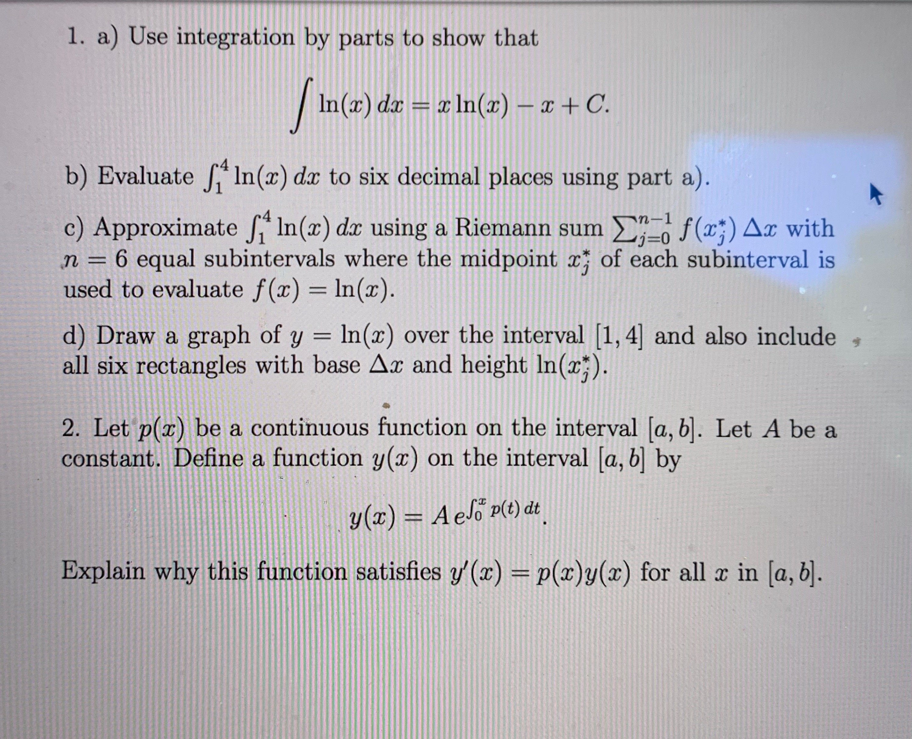 1. a) Use integration by parts to show that / In (x) da = x In(x) ...