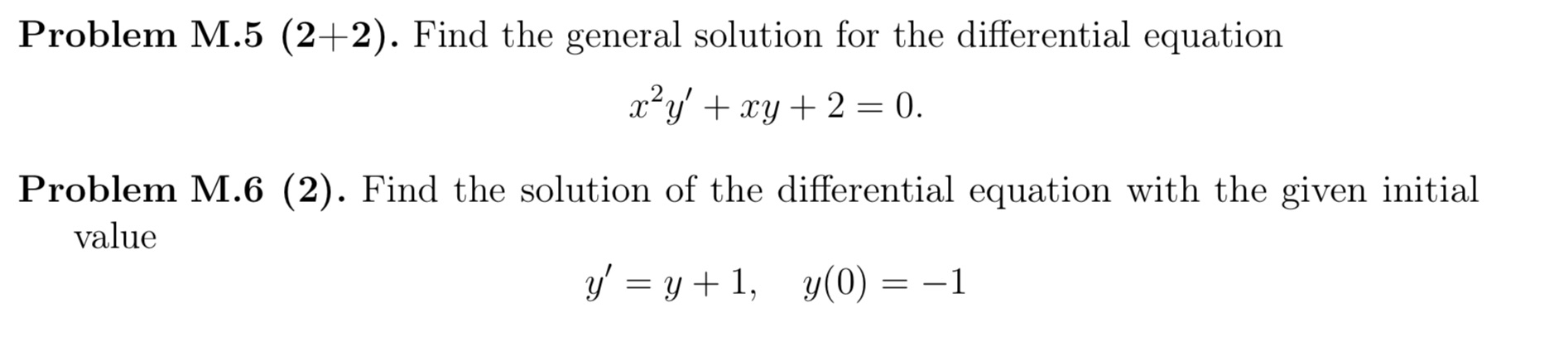 Problem M.5 (2+2). Find the general solution for the differential e...