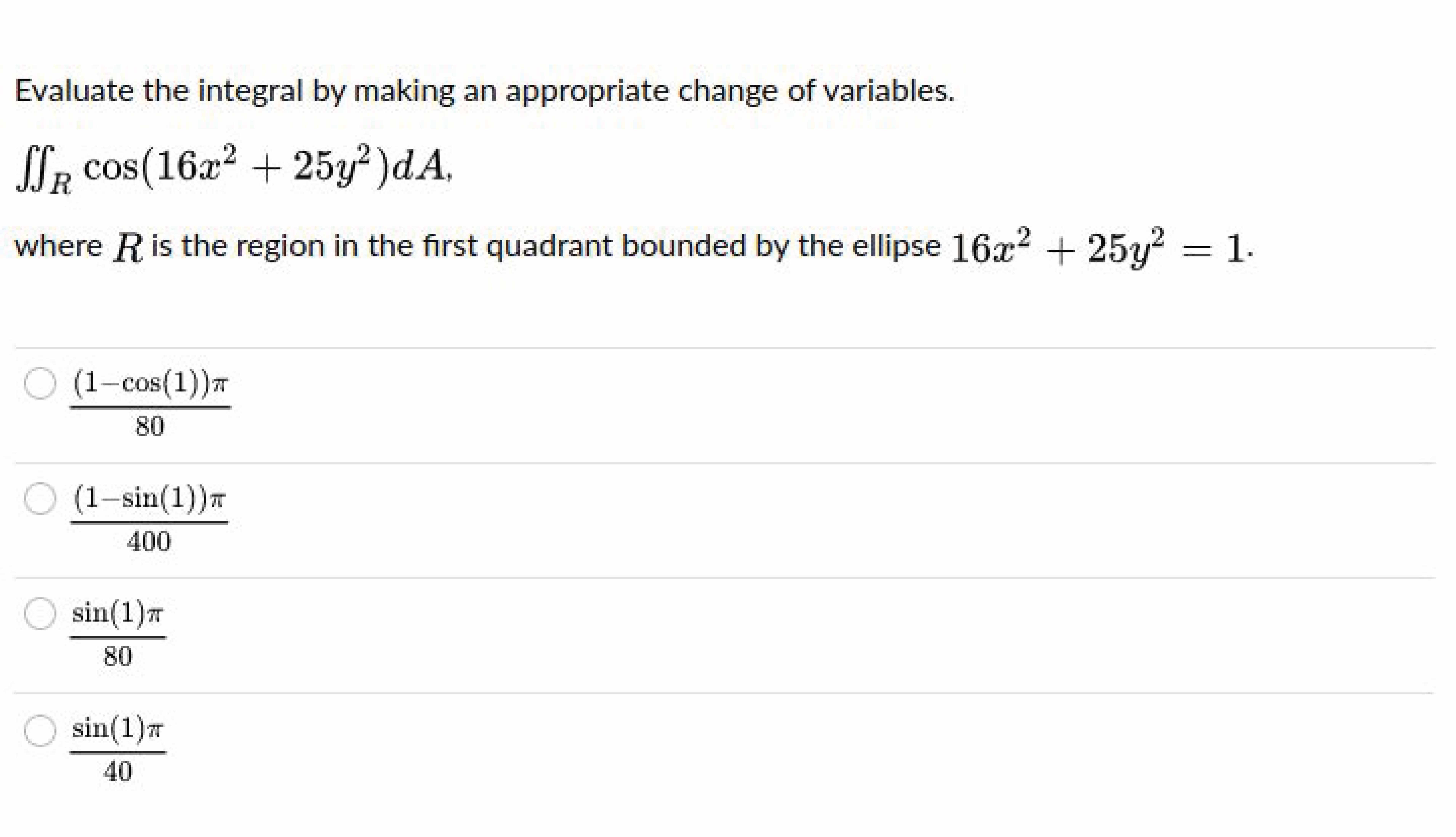 Evaluate the integral by making an appropriate change of variables....