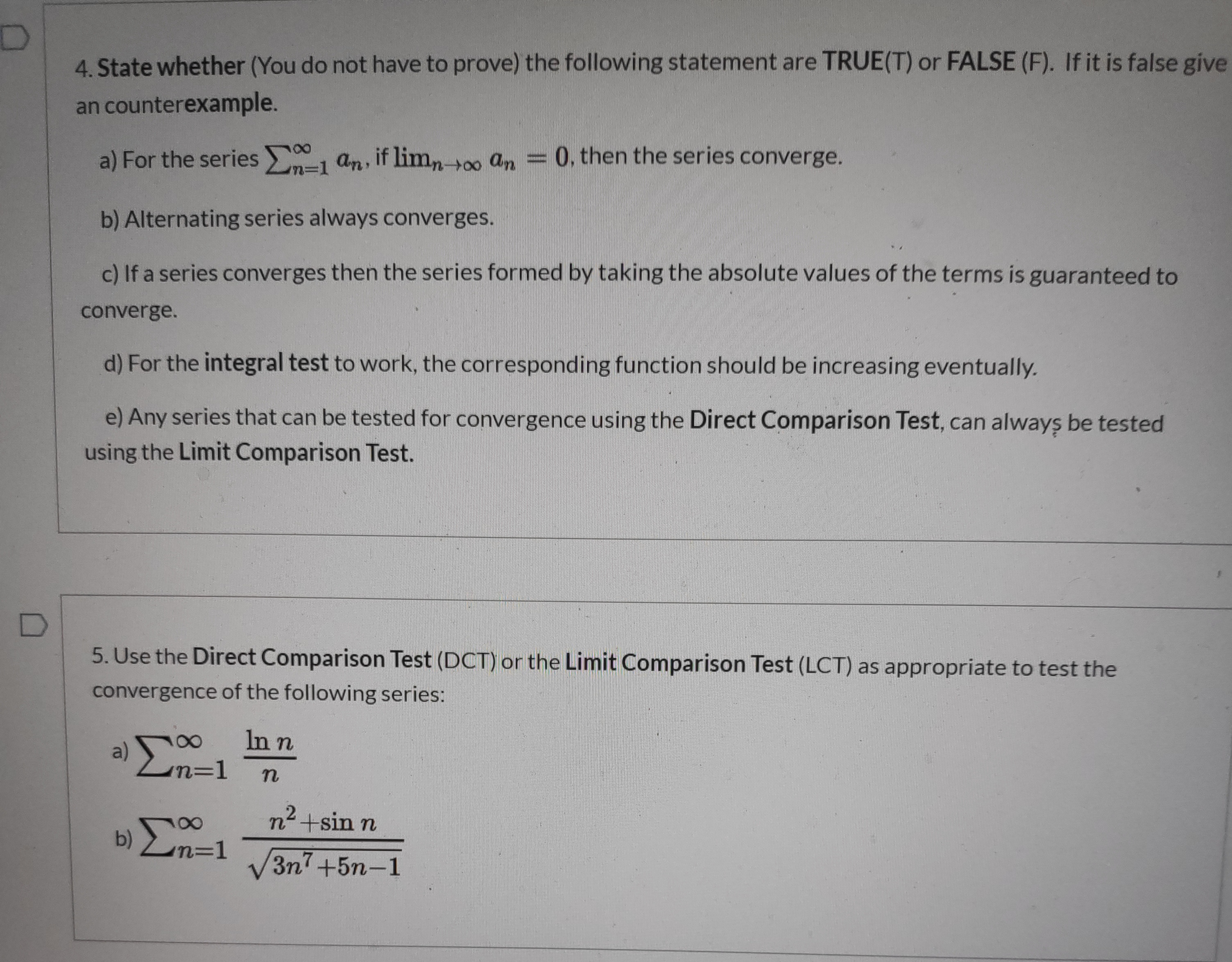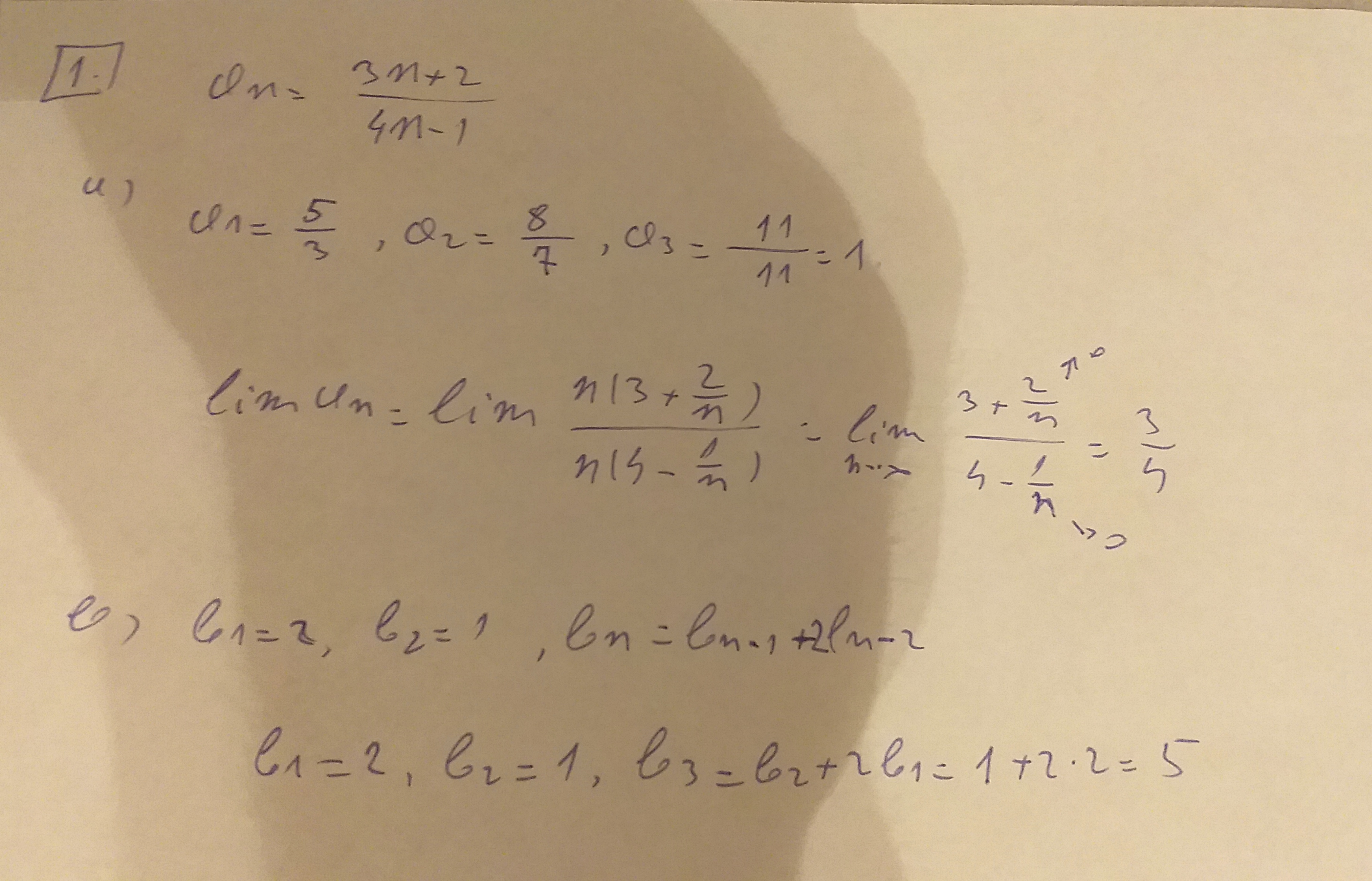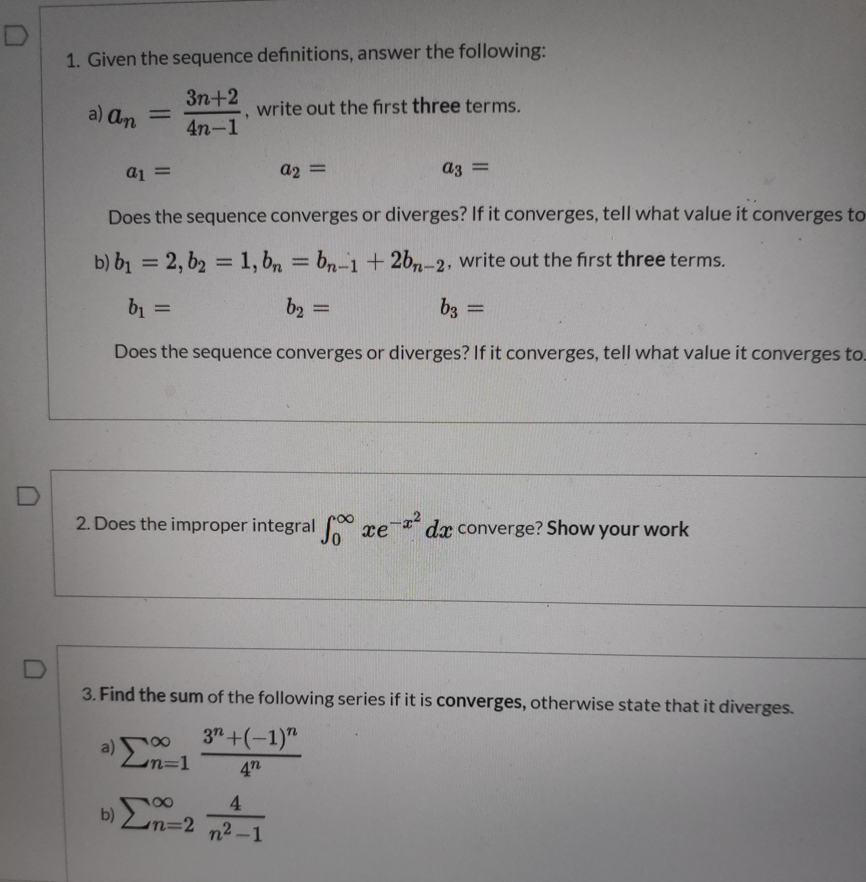 1. Given the sequence definitions, answer the following: a) an - 3...