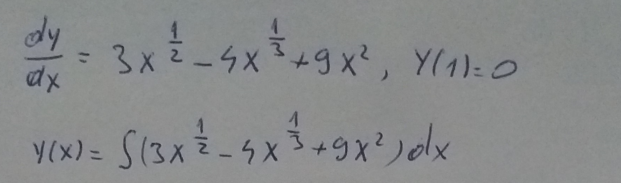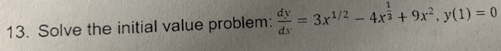 3. Solve the initial value problem: -==3x1/2 - 4x3+9x²,y(1)