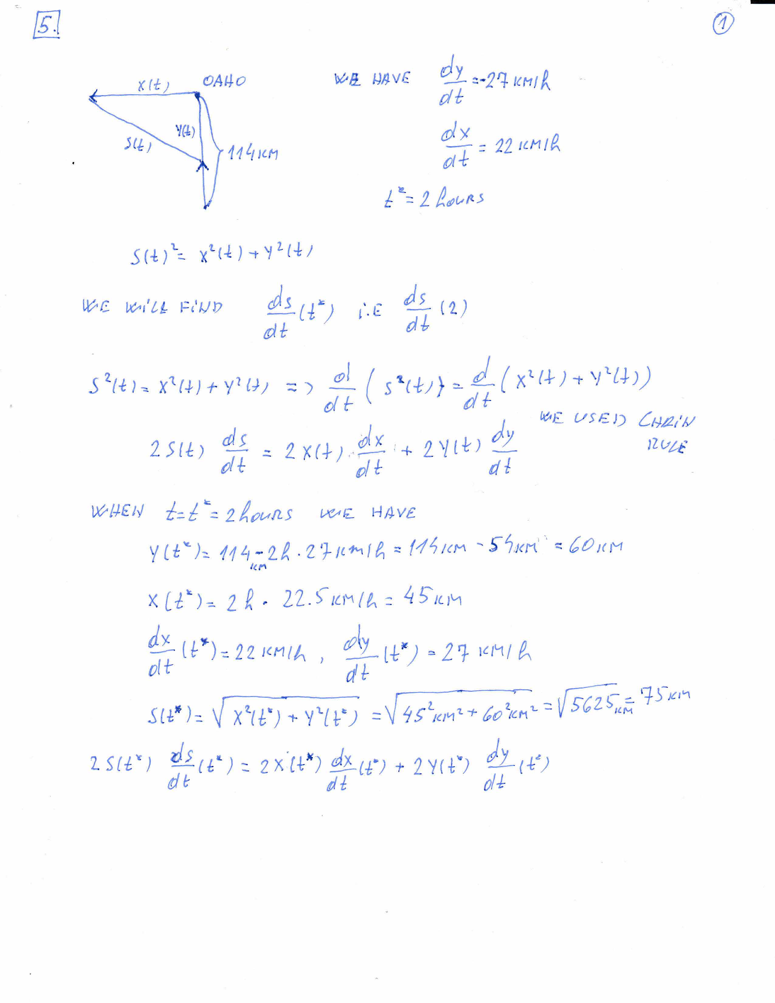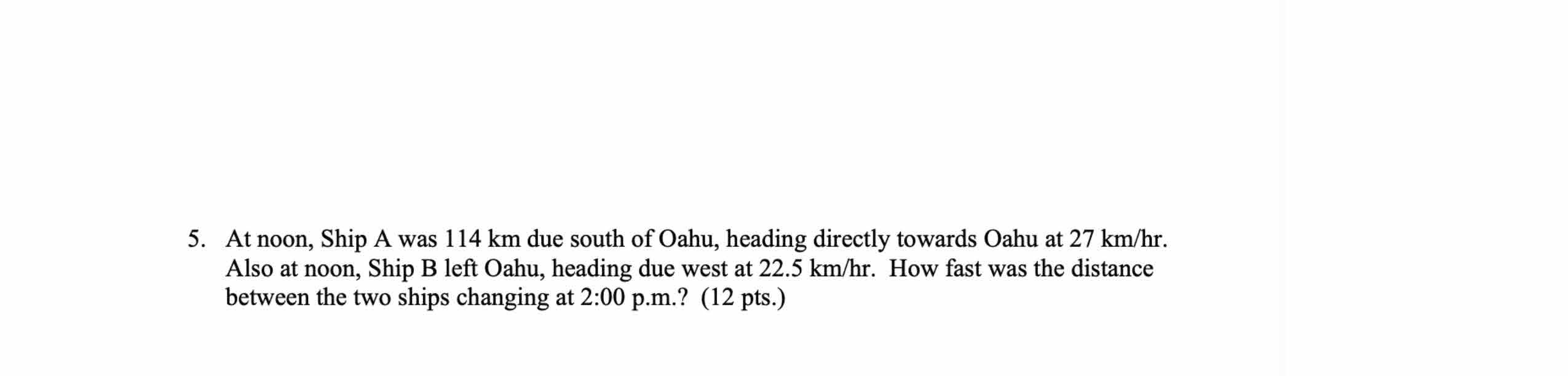 5. At noon, Ship A was 114 km due south of Oahu, heading directly t...