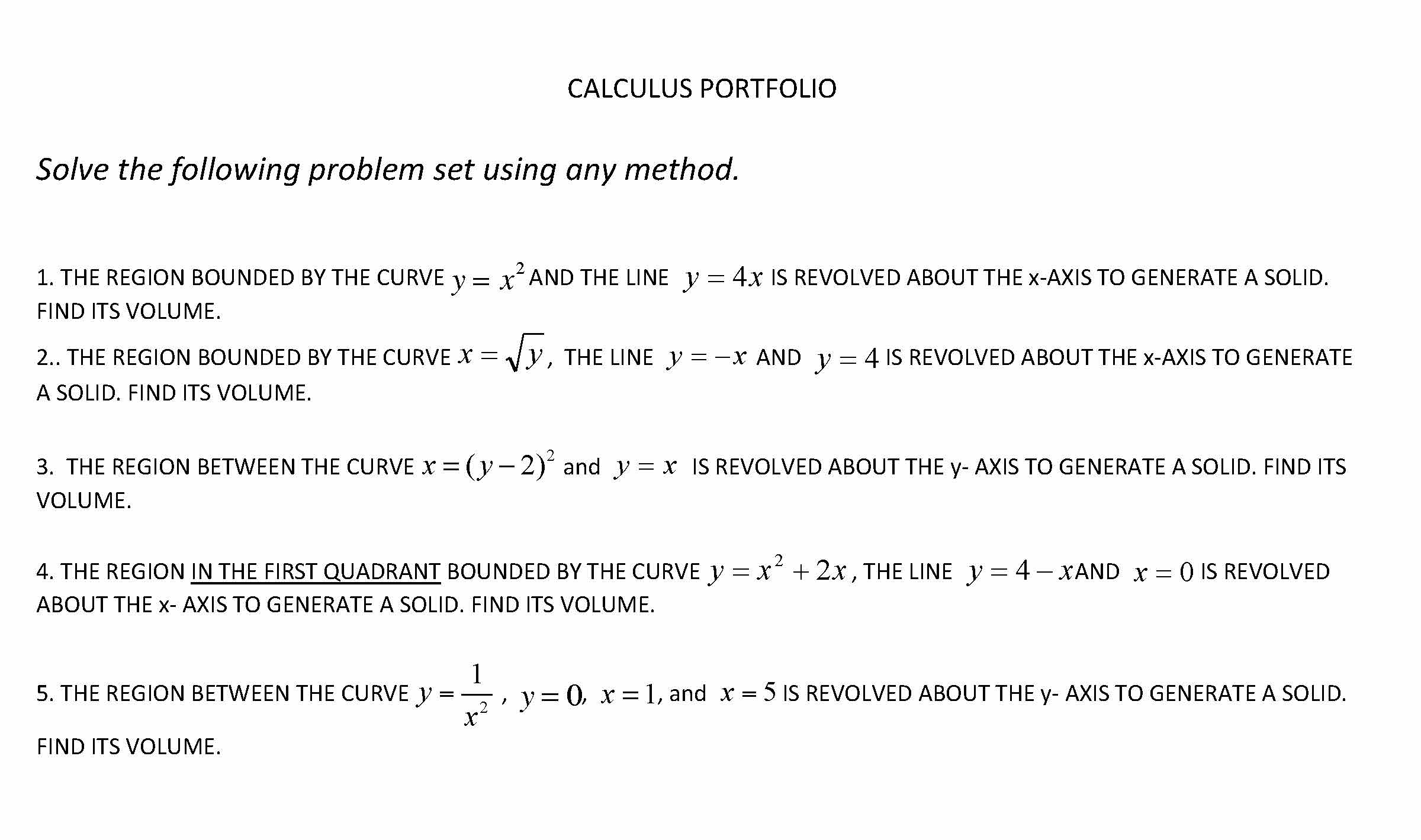 CALCULUS PORTFOLIO Solve the following problem set using any met...