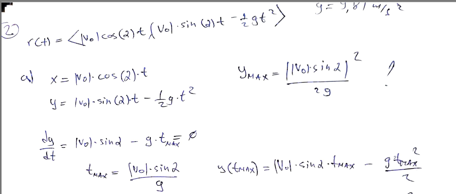 2) Recall the vector equation for ideal projectile motion is r(t)...