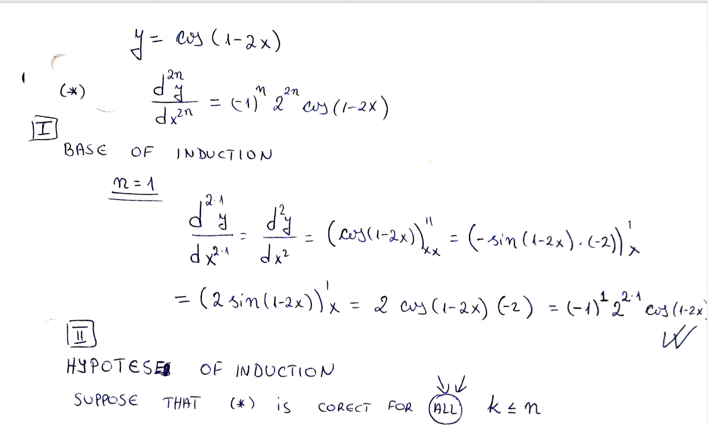 day Prove by mathematical induction that the 2nth derivative of y ...